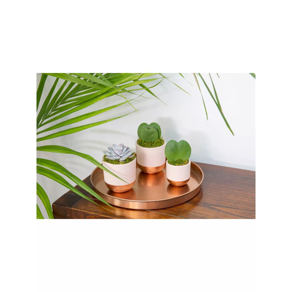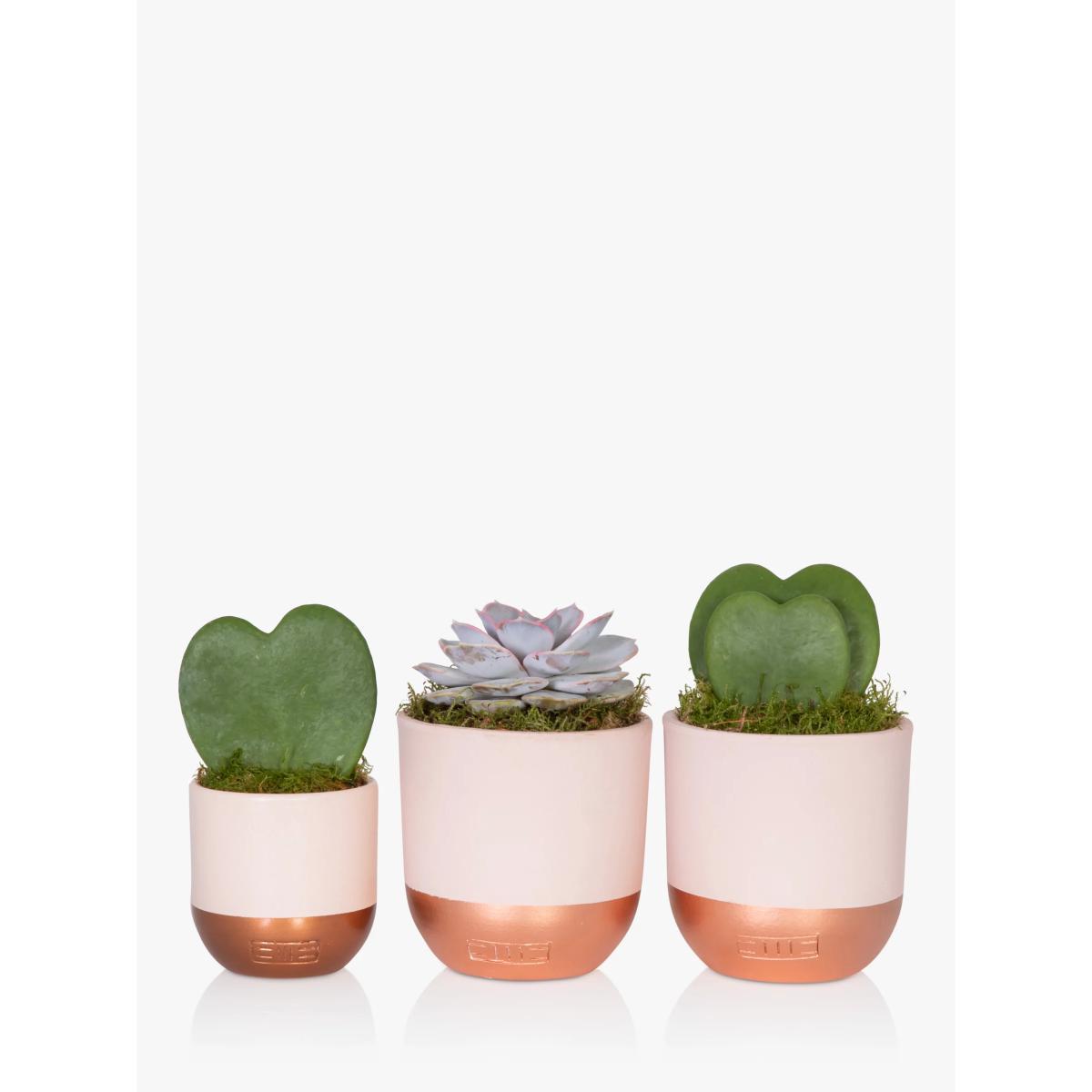 This cute trio of succulents is the perfect green gift. Styled in The Little Botanical gorgeous soft pink and copper ceramics, these pretty succulents will put a smile on your recipient face. These beauties don’t need too much care and will look great for weeks to come. Included in this plant gang: – Medium Lilacina Succulent – Double Hoya Kerrii Heart – Single Hoya Kerrii Heart The Hoya Heart measures approx 12-14cm total height including pot. The Double Hoya Heart and Lilacina measures approx 15-17cm total height including pot. These little succulents will be happiest in a bright spot and only need watering once every 3-4 weeks or when the soil feels dry – just make sure they don’t get too wet as they don’t like soggy feet. The two heart-shaped succulents, paired with the stunning pale purple Lilacina create a stunning gift and are the perfect size to style a tablescape or add to your favourite tray. Why not add this pretty succulent plant gang to your home or send a green parcel to a friend as a unique gift. They'll be delighted to open the box and find these little gems. These cute Hoya succulents are a leaf cutting in the shape of a heart and is very much a cute novelty, they would usually thrive for weeks to come. Caring for your plant Always follow the attached care instructions. Whilst this will give your plants the best chance of thriving, environmental factors will also play a big impact on your plant's life span such as exposure to sun and humidity. Please note: As plants are a live product, the dimensions and images provided are estimates only as each plant is unique. How to add a personal message to your plant Place your order Immediately email your gift message to johnlewis@thelittlebotanical.com including your order number in the email subject Refund policy We can't offer refunds or exchanges on perishable goods such as flowers and food, unless faulty or not as described.. This does not affect your statutory rights. FIND KEEP GIVE - Gifts designed & curated by us Everything we are goes into everything we do, and this is showcased in our uniquely designed gifting collection. Made of a vast range of indulgent gifting products, the FIND KEEP GIVE collection is ideal whether you are looking for the perfect presents for friends and family or the ideal from me, to me item.