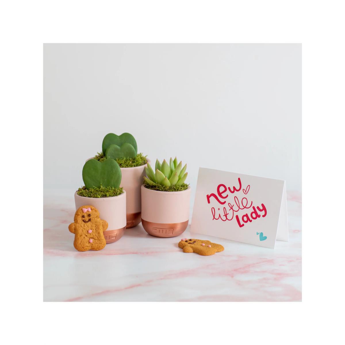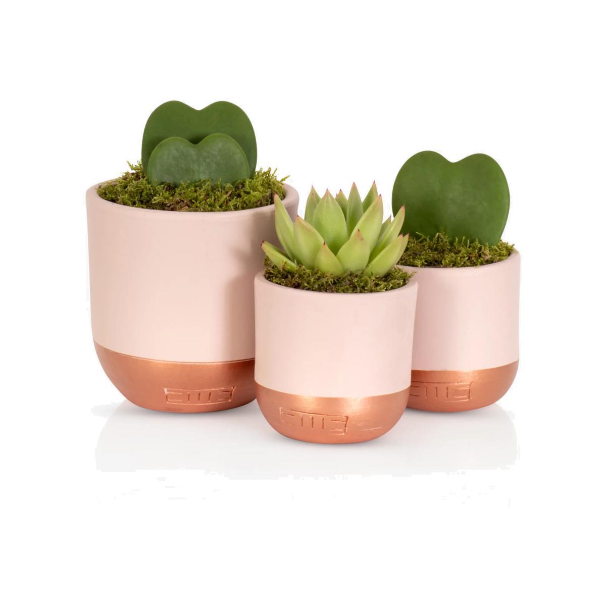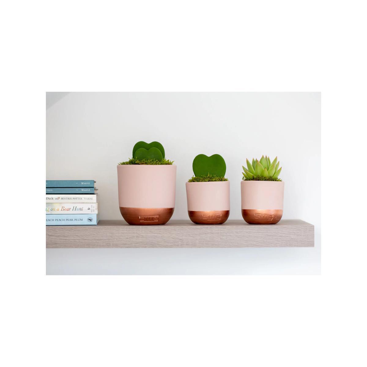 The perfect new baby gift, these adorable heart succulents in pretty pink pots will add a contemporary edge to baby's nursery. Potted in pale pink and copper ceramics, these long-lasting succulents make a stunning gift that requires little watering so are perfect for a very busy mum and dad. These cute Hoya succulents are a leaf cutting in the shape of a heart and is very much a cute novelty, they would usually thrive for weeks to come. How to add a personal message to your plant Place your order Immediately email your gift message to johnlewis@thelittlebotanical.com including your order number in the email subject Care advice These plants only need a tablespoon of water every 3-4 weeks, or once a fortnight if your house is particularly warm. Water the soil, not the leaves. These plants will perform best in a well-lit area but will also tolerate a darker space. Caring for your plant Always follow the attached care instructions. Whilst this will give your plants the best chance of thriving, environmental factors will also play a big impact on your plant's life span such as exposure to sun and humidity. Please note As plants are a live product, the dimensions and images provided are estimates only as each plant is unique. Refund policy We can't offer refunds or exchanges on perishable goods such as flowers and food, unless faulty or not as described. Find out more. This does not affect your statutory rights. FIND KEEP GIVE - Gifts designed & curated by us Everything we are goes into everything we do, and this is showcased in our uniquely designed gifting collection. Made of a vast range of indulgent gifting products, the FIND KEEP GIVE collection is ideal whether you are looking for the perfect presents for friends and family or the ideal from me, to me item.