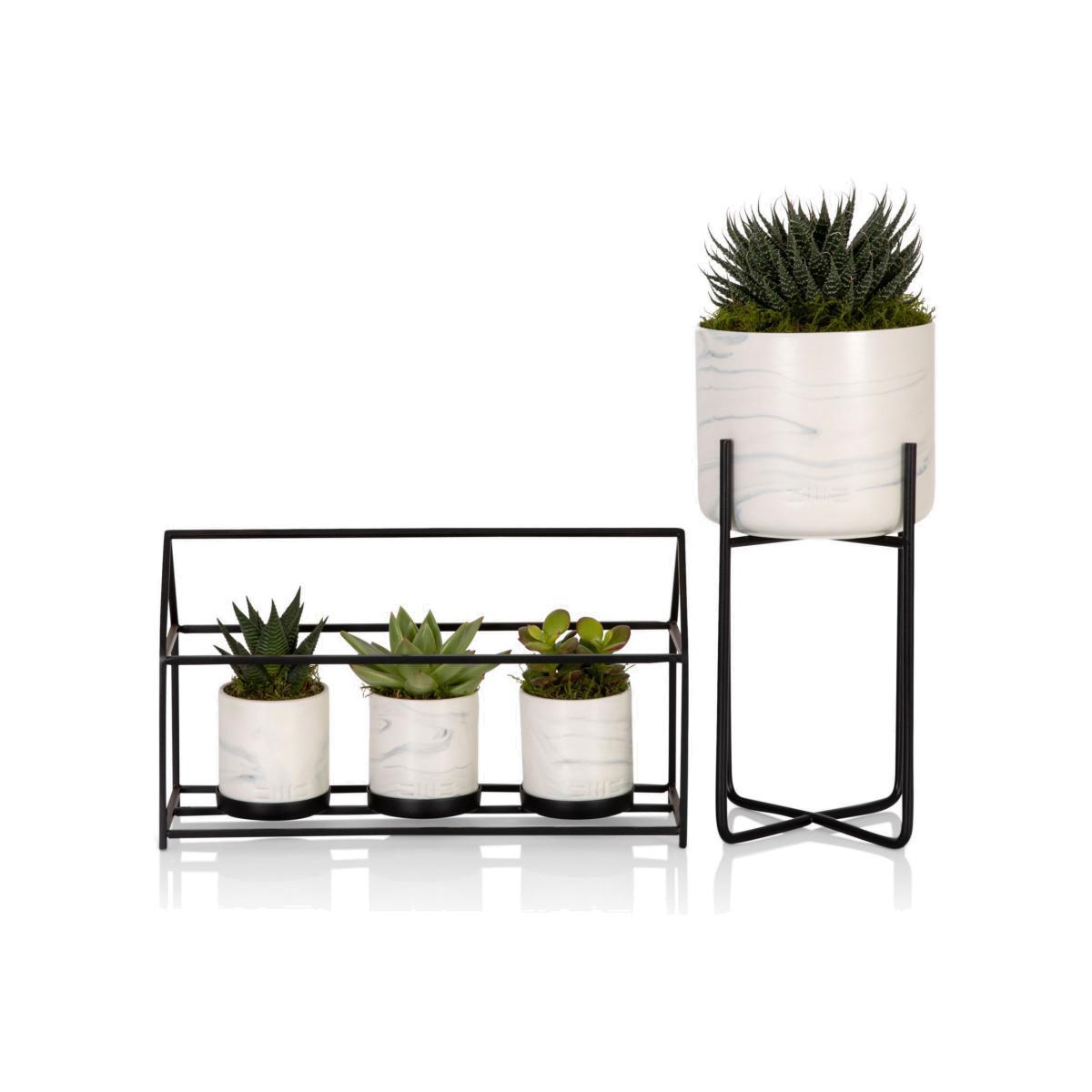 This popular group of gorgeous succulents in marble planters is an absolute must-have for your house. The marble Succulent Trio House and Succulent Plant Stand look great together and will add a real feeling of zen to your home. The Succulent Trio House includes 3 different living succulents planted in little marble pots in a black metal house. Paired with the Haworthia Succulent Planter stand, they give a real “Wow!” effect. Both of these are from The Little Botanical's newest collection and are all very easy to look after as they should only need watering once every 3-4 weeks. Just don't let them sit in water as they don't like to get their feet wet. Place in a spot in your home that gets medium to good light and it's guaranteed you will love the new addition of green that these bring. Large Haworthia Succulent Estimated plant height with stand: 37cm Internal pot diameter: 13.5cm Pot height without stand: 13cm Pot height with stand: 32cm Succulent Trio House Estimate plant height:12-14cm Internal pot diameter: 6cm Pot height:7.5cm Worth knowing: the plants and plant stand may arrive in separate boxes. Just pop the planter on the stand and it's ready for its forever home. Care Instructions All these succulents should only need watering once every 3-4 weeks and a few tablespoons of water should be sufficient. Look out for lower shrivelled, wilting leaves as this is the plants telling you they are thirsty. Ensure the plant is watered into the soil, not over the top of the leaves. Succulents like a well-lit spot in your home. How to add a personal message to your plant Place your order Immediately email your gift message to johnlewis@thelittlebotanical.com including your order number in the email subject Caring for your plant Always follow the attached care instructions. Whilst this will give your plants the best chance of thriving, environmental factors will also play a big impact on your plant's life span such as exposure to sun and humidity. Please note As plants are a live product, the dimensions and images provided are estimates only as each plant is unique. Refund policy We can't offer refunds or exchanges on perishable goods such as flowers and food, unless faulty or not as described. Find out more. This does not affect your statutory rights. FIND KEEP GIVE - Gifts designed & curated by us Everything we are goes into everything we do, and this is showcased in our uniquely designed gifting collection. Made of a vast range of indulgent gifting products, the FIND KEEP GIVE collection is ideal whether you are looking for the perfect presents for friends and family or the ideal from me, to me item.