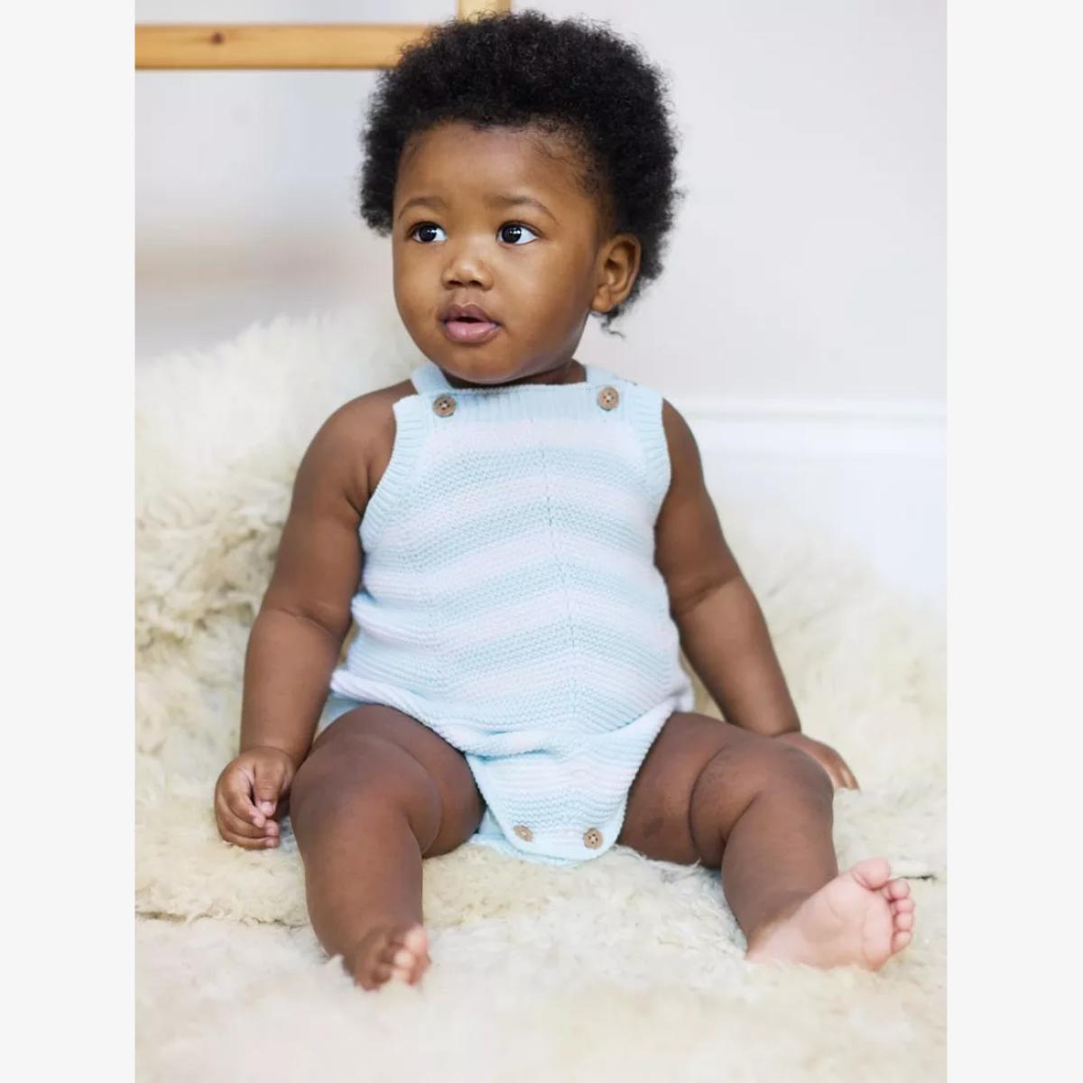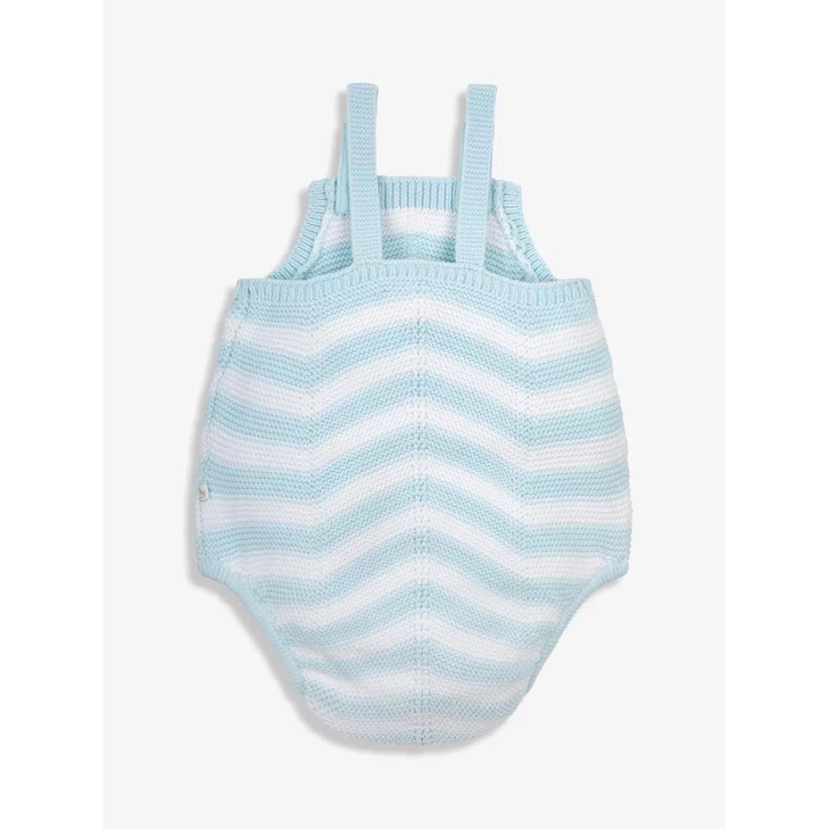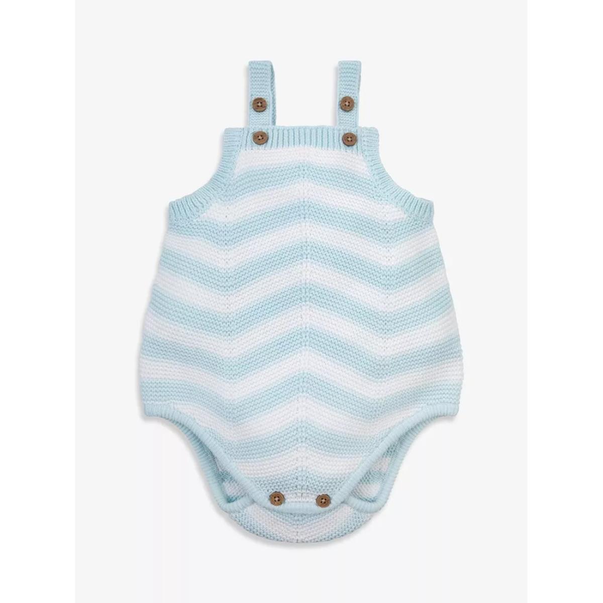 In a timeless chevron design, this cotton knit baby romper features button straps and popper leg openings for easy dressing.