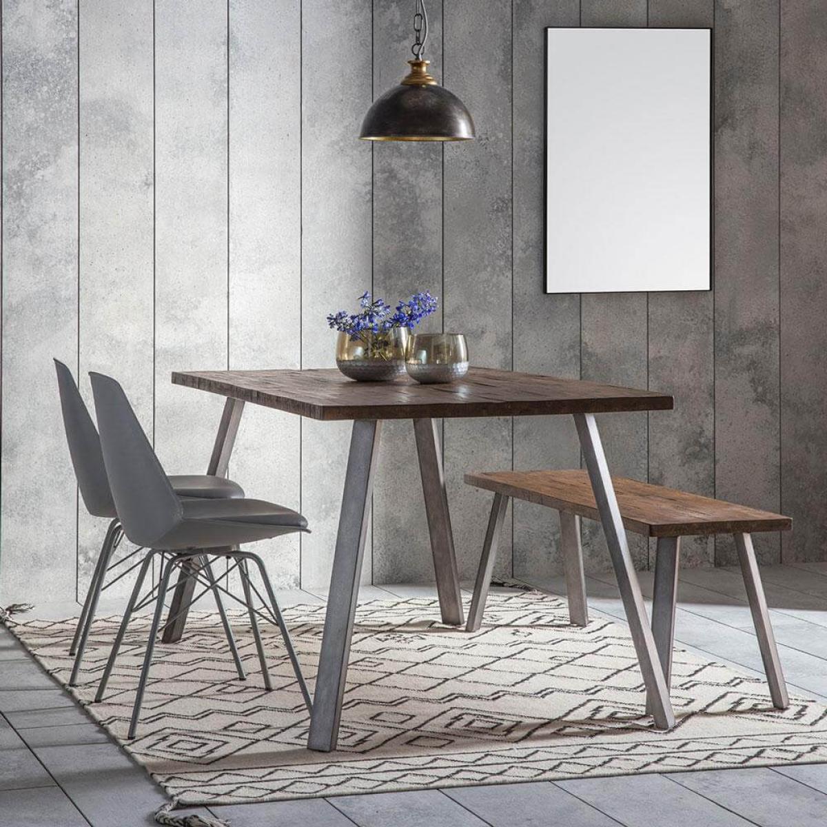 The Loft Dining Table would suit dining rooms of all styles. The Loft Dining Table is from one of our darker dining ranges, with the table top comprising of a cross-section of different cuts of acacia wood. This rich finish helps to give character to what is a fairly modern and simplistic form. The brushed metal legs are handpainted in a stylish gun metal grey, which looks slightly different depending on the time of day and light hitting it and would look great in any décor. The combination of acacia wood and metal legs ensures this piece is sturdy and it is of a size that 6 people could comfortably sit around it – maybe more if you team with the matching bench. Discount available if purchased as part of a dining set. Why not check out some of the other products available inthe. Loft Range.
