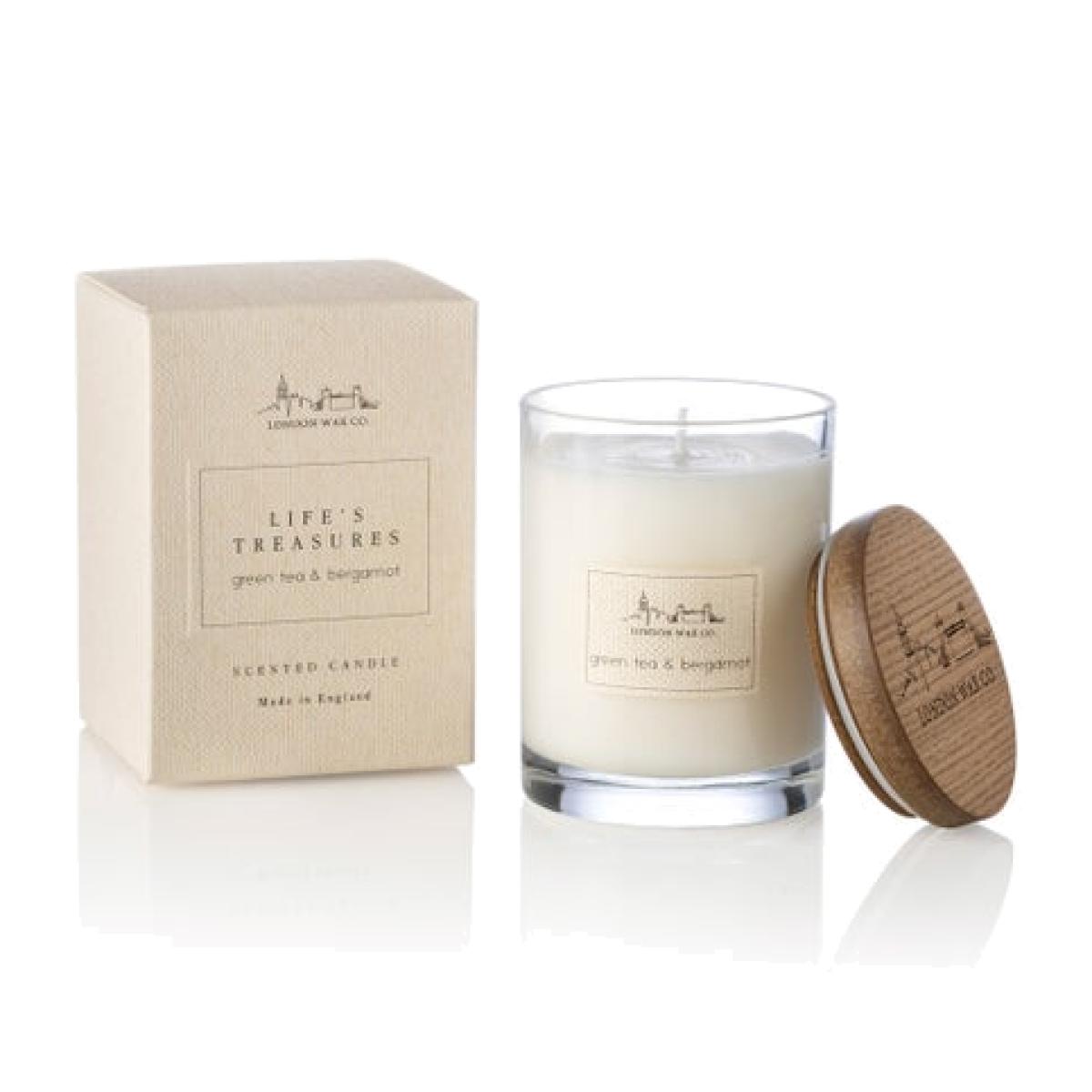* Clear glass container * Wooden lid * Refreshing scent * 45 hour burn time Unwind with the calming scent of green tea and bergamot from this London Wax Co Candle. Housed in a chic glass vessel with a natural wooden lid, it’s a stylish addition to any room. Light it to create a serene, spa-like atmosphere or to simply enjoy a moment of relaxation. Ideal for gifting or adding a touch of tranquillity to your space - the perfect blend of soothing fragrance and understated style.