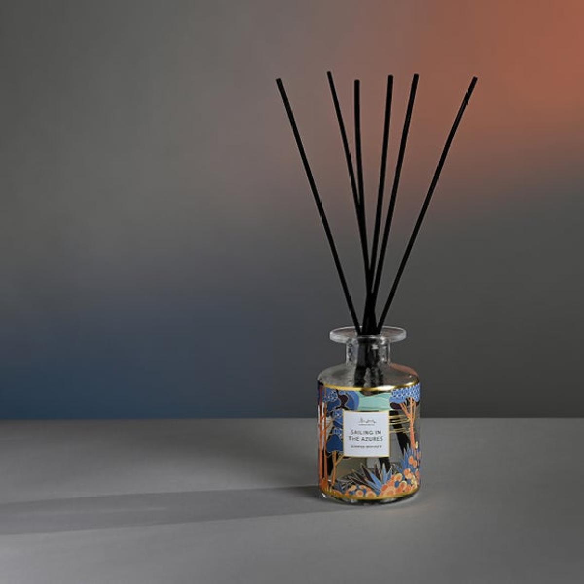 * Decorative glass bottle * Natural wooden reeds * Fresh, coastal scent Drift away on a fragrant breeze with The London Wax Company's Sailing In The Azures Diffuser. This delightful glass bottle holds fragrant oil and comes with natural wooden reeds to gently scent your home. The coastal design on the box makes it a lovely gift or a treat for yourself. Hand-poured in the UK, the fragrance features top notes of sea breeze, a heart of begonia and hydrangea, and a base of amber and musk. Let this beautiful aroma transport you to a peaceful coastal scene.