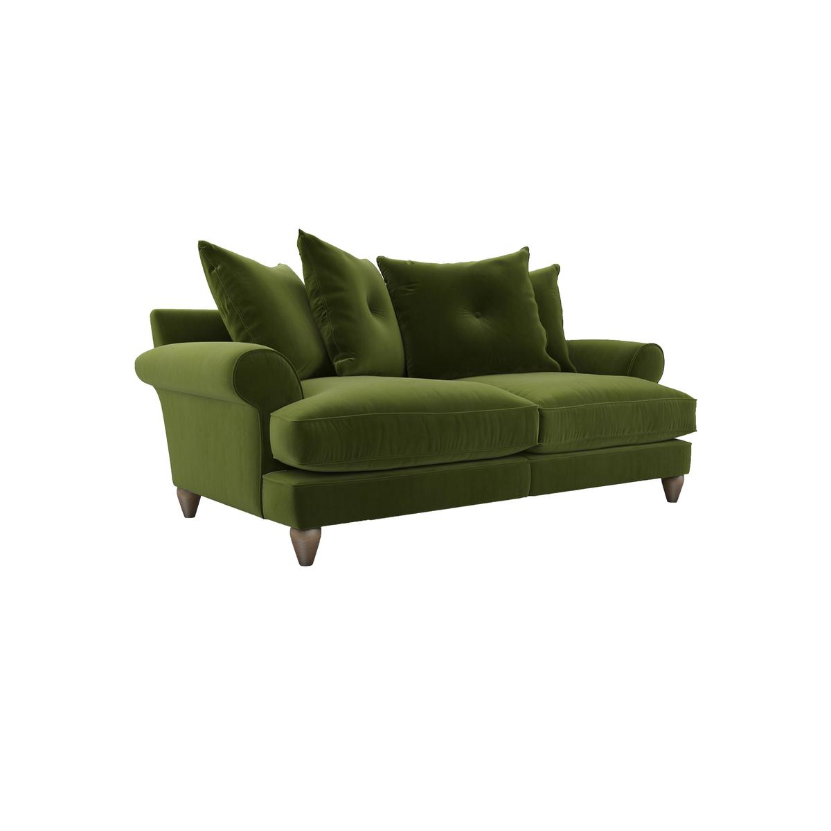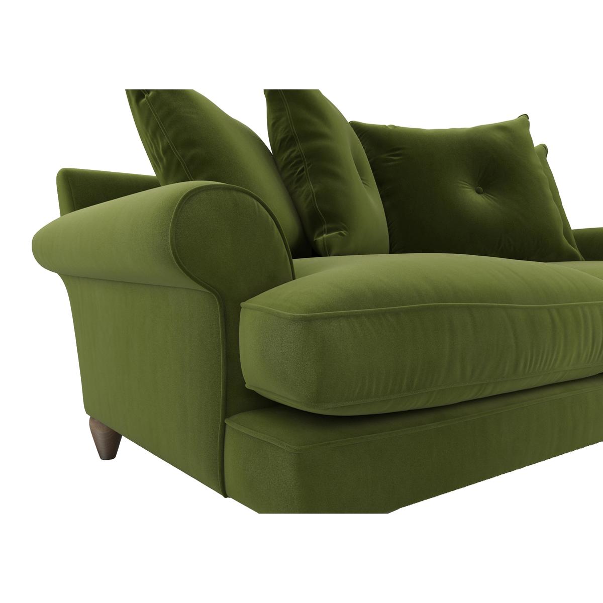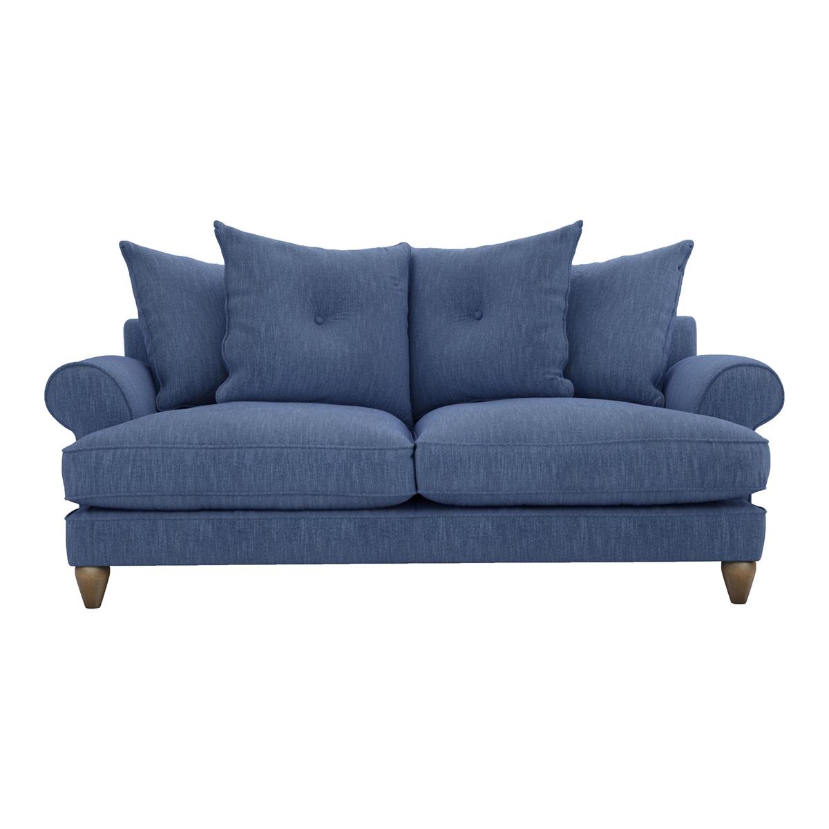 Contemporary classic design. Available in a choice of beautiful, soft fabrics. Handcrafted in Britain. If you love the classic, tailored look, you’ll love The Lounge Co. Bronwyn Three Seater Fabric Pillow Back Sofa. With a contemporary feel, this timeless sofa is inviting and offers a deeply cushioned lounging experience you’ll love coming home to. Indulge in the comfort of four feather-filled scatter cushions and deep sprung seats with fibre-filled seat cushions upholstered in a soft-feel fabric. You’ll want to keep lounging all day once you’ve taken a seat. Handcrafted in Britain, every detail is carefully hand finished and made to last. Its soft lines, tailored piping and elegant scroll arms perfectly complement the more contemporary deep seats, offering you the best of both worlds: indulgent comfort and classic style. Vintage oak legs complete this sofa’s timeless appeal, promising to transform your space into a relaxed, laid-back haven. Simply call us on 0800 804 8879 for a wonderful selection of fabrics and colours, a choice of washed oak or walnut leg finishes and a luxurious feather wrapped foam seat cushion upgrade. A Furniture Village exclusive, this handcrafted, beautifully designed three seater fabric pillow back sofa is part of the timeless Bronwyn range from The Lounge Co. Top tip: Some fabrics can show wear on areas of more use or in direct sunlight. To keep your fabric upholstery looking fresh, plump, turn and rotate seat and back cushions regularly if possible.