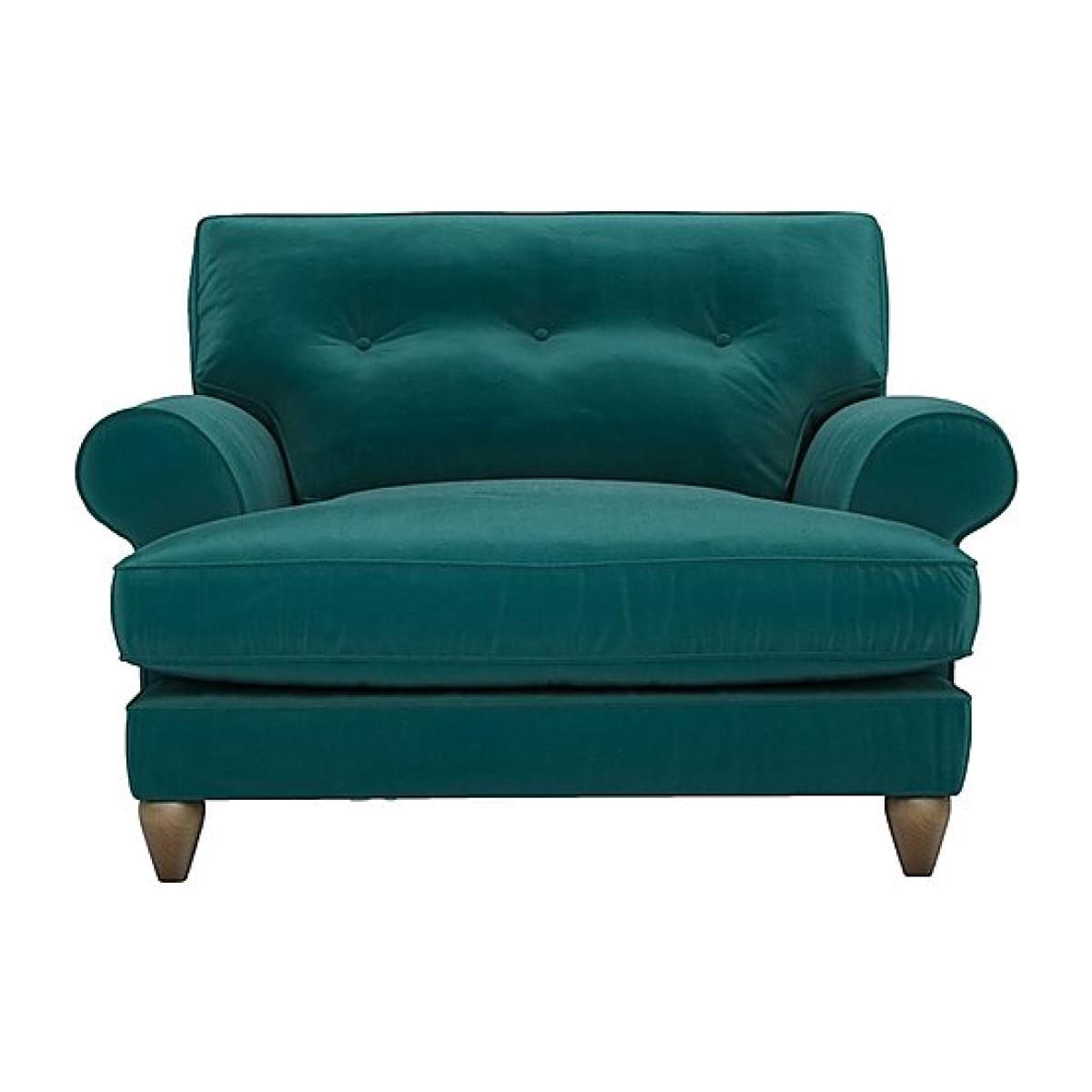 Stock code: 8820AC0380. 3 Please note: this clearance item has limited stock and is subject to availability. Indulgent and timeless, this stylish snuggler chair is just made for comfort- seekers who like to relax in style. Handcrafted for Furniture Village. Why you'll love it Traditional design meets contemporary luxury. Timeless style with a touch of retro flair. Beautifully upholstered insoft fabrics. With classic scroll arms, polished wood legs and neatly piped edges. Sprung seat and ultra- comfy cushioning. Handcrafted in Britain exclusively for Furniture Village. This fabric classic back snuggler is part of The Lounge Co. Bronwyn range. What you need to know Medium comfort level. Seat suspension: serpentine springs. Seat cushioning: fibre. Back support: elastic webbing. Back cushioning: fibre. To maintain cushion fullness, be sure to plump daily. Some fabrics can show wear on areas of more use or in direct sunlight. Flattening and shading of heavy wear areas on pile fabrics is unavoidable. Clean regularly using a soft brush or vacuum with the curtain attachment. Deal with any spills promptly. Professional cleaning advised for oil- and grease- based stains. Please read our upholstery care guide for more advice.
