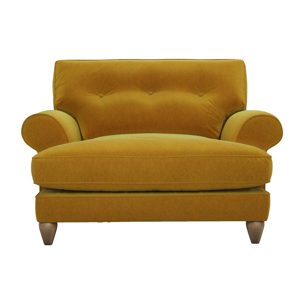 A modern classic, the Bronwyn range from The Lounge Co. showcases the best of British craftsmanship. Classic yet contemporary, this beautiful range combines inviting, deep-seats with classic scroll arms and tailored piping to achieve a perfect balance of style and comfort. Fibre-filled seats combine with feather and fibre-filled back seats to create a sit that’s truly indulgent. Available in a wide choice of contemporary fabrics and colours with a choice of leg finishes and cushion upgrades. Exclusively handcrafted for Furniture Village. Handcrafted in Britain. Contemporary classic design. Available in a choice of beautiful, soft fabrics. Handcrafted in Britain. Indulgent and timeless, The Lounge Co. Bronwyn Fabric Snuggler is perfect for comfort-seekers who like to relax in style. Its classic silhouette immediately catches the eye in any living space and is beautifully complemented by tailored piping and elegant scroll arms. With such a perfect balance of classic and contemporary styling, this snuggler looks right at home in living rooms of any style. The comfort on offer is luxurious and indulgent, with fibre-filled seat cushions, deep and inviting sprung seats and fibre and feather-filled back cushions. The upholstery is wonderfully soft too - this is a snuggler you’ll want to lounge in all day. Handcrafted in Britain, this snuggler has been made to last and you’ll find quality everywhere, from the stitching to the tapered vintage oak legs. We offer a walnut or washed oak leg finishes, a feather wrapped foam seat cushion upgrade and a fantastic choice of fabric and colour upholstery options. Exclusive to Furniture Village, this deep-seated, inviting and timeless snuggler is part of the Bronwyn range from The Lounge Co. Top tip. Some fabrics can show wear on areas of more use or in direct sunlight. To keep your fabric upholstery looking fresh, plump, turn and rotate seat and back cushions regularly if possible.