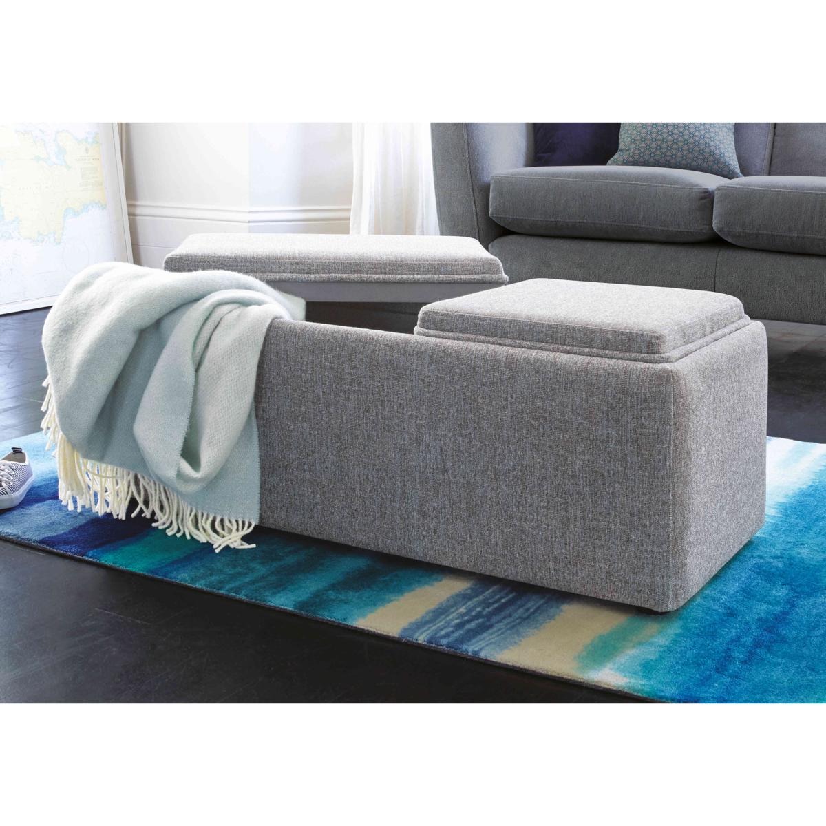 A modern classic, the Bronwyn range from The Lounge Co. showcases the best of British craftsmanship. Classic yet contemporary, this beautiful range combines inviting, deep-seats with classic scroll arms and tailored piping to achieve a perfect balance of style and comfort. Fibre-filled seats combine with foam and fibre-filled back seats to create a sit that’s truly indulgent. Available in a wide choice of contemporary fabrics and colours with a choice of leg finishes and cushion upgrades. Exclusively handcrafted for Furniture Village. Handcrafted in Britain. Multi-functional versatility meets elegant living room style in our Bronwyn bench footstool. The cushioned top hides a large storage space and a section of it even turns into a drinks tray. Why you'll love it Elegant contemporary style. Innovative multifunctional design makes it a living room must-have. Use it as a footrest, extra storage, guest seat and more. A section of the top even flips over to become a tray. With a roomy compartment for magazines and TV remotes. Beautifully upholstered in a choice of soft fabrics. Wooden feet. Exclusive to Furniture Village. This bench footstool with tray is part of The Lounge Co. Bronwyn range. What you need to know Cushioning: foam. Some fabrics can show wear on areas of more use or in direct sunlight. Clean regularly using a soft brush or vacuum with the curtain attachment. Deal with any spills promptly. Professional cleaning advised for oil- and grease-based stains. Please read our upholstery care guide for more advice.