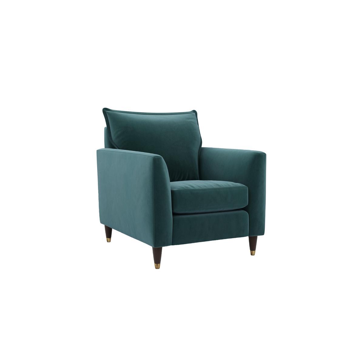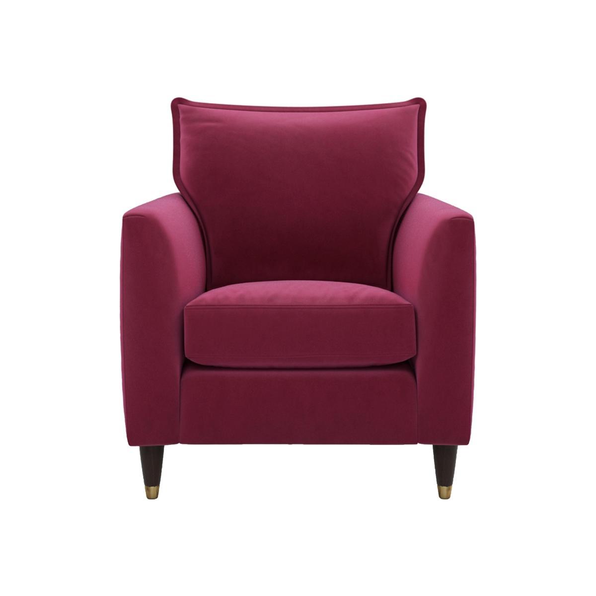 Captivating Colette is waiting to pamper you with velvety upholstery, roomy seats and glamorous detailing. The chic, retro open-base sofas and chairs have slim arms and tapered, metal tipped legs. Sink into the indulgent, luxury-fibre cushions. A fibre-wrapped foam seat upgrade is available for a firmer sit. The sofas have plump, feather-filled velvet bolsters in the same pillow-style as the back cushions. Large and small scatters in stylish prints are available separately. Lounge Co. Colette is made exclusively for Furniture Village. The Colette armchair is indulgently cushioned with soft, velvety upholstery. It has plenty of chic retro style and some very glamorous detailing. Seat upgrade available. Why you’ll love it. Soft and tactile velvety upholstery in a choice of colours. Chic retro, mid-century style. Tapered, metal tipped legs in a choice of luxury finishes. Indulgent, pillow-style back cushion. Sinkably soft luxury fibre seat and back cushions. Expertly handcrafted in the UK for Furniture Village. What you need to know. Serpentine sprung seat, sprung back. Walnut finish legs with brushed brass leg caps. Small or large fibre-filled scatters available separately. Some fabrics can show wear on areas of more use or in direct sunlight. Plump, turn and rotate seat and back cushions regularly if possible. Please read our. Upholstery care guide. For more advice. Part of the Lounge Co. Colette range.