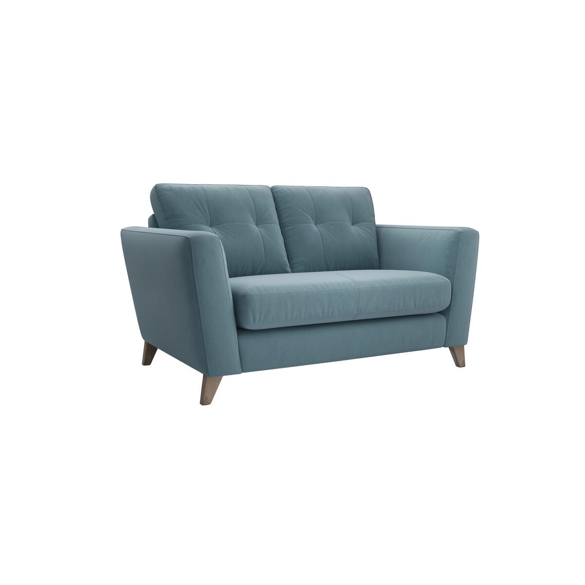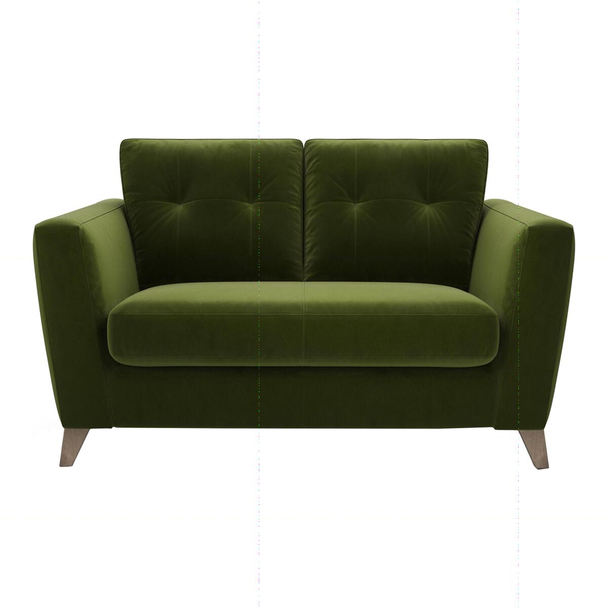 Blend of retro and contemporary style Choice of beautiful, soft fabrics Handcrafted in Britain Brimming with retro charm, The Lounge Co. Hermione Two Seater Fabric Sofa could be just what your living space needs. With its stylish buttoned back cushions, elegant tapered, washed oak legs and clean- lined silhouette, its effortlessly stylish - and it doesnt stop there. The comfort on offer is truly indulgent with foam- filled seat cushion and fibre- filled back cushions resting on roomy, sprung seats. The soft fabric upholstery feels ultra- soft to the touch and makes your lounging experience that much more luxurious. Handcrafted in Britain, every inch of this beautiful, retro- inspired has been carefully hand finished and its compact design means its ideal for those who live in smaller spaces like studios and flats. Only available at Furniture Village, this stylish, retro- inspired two seater fabric sofa is part of the beautifully handcrafted Hermione range from The Lounge Co. Top tip: Some fabrics can show wear on areas of more use or in direct sunlight. To keep your fabric upholstery looking fresh, plump, turn and rotate seat and back cushions regularly if possible.