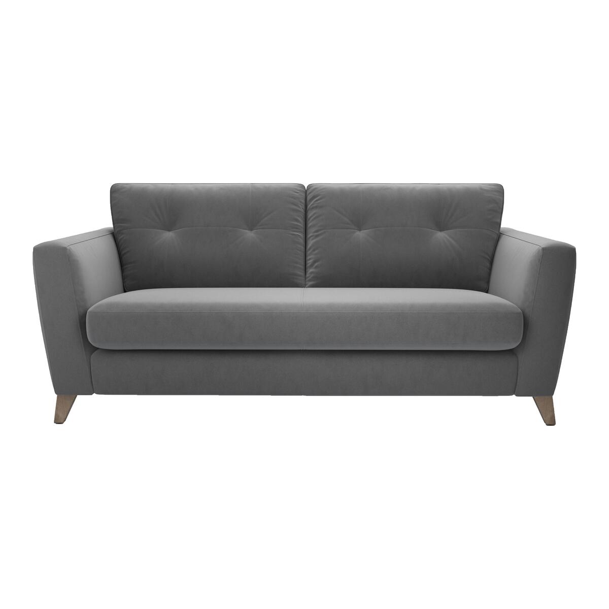The perfect blend of contemporary design and mid-century influence, The Lounge Co. Hermione range offers effortless style and indulgent comfort with a retro feel. Its signature style brings relaxed sophistication to any living space. Enjoy the comfort of foam-filled seat cushions, fibre-filled back cushions and roomy sprung seats. Handcrafted in Britain with buttoned back cushion detailing and elegantly tapered washed oak legs, it promises to add style and comfort to your home. Available in a range of gorgeous colours, contemporary fabrics and soft leather. Exclusive to Furniture Village. Blend of retro and contemporary style. Choice of beautiful, soft fabrics. Handcrafted in Britain. The Lounge Co. Hermione Three Seater Fabric Sofa brims with retro charm. From the buttoned detailing on the back cushions to the elegant, tapered washed oak feet, its contemporary design has mid-century influences throughout. Handcrafted in Britain, quality is sewn into every stitch so you can rest easy knowing it will be with you for years to come. We love its clean lines and elegant, contemporary silhouette. Indulge on the sprung seats, roomy, foam-filled seat cushions and fibre-filled back cushions and completely unwind on the soft-feel fabric upholstery. Despite spacious seats, its compact size means it’s a great choice for those in smaller spaces like studios and flats. Only available at Furniture Village, this beautifully handcrafted three seater fabric sofa is part of the retro-inspired Hermione range from The Lounge Co. Top tip. Some fabrics can show wear on areas of more use or in direct sunlight. To keep your fabric upholstery looking fresh, plump, turn and rotate seat and back cushions regularly if possible.