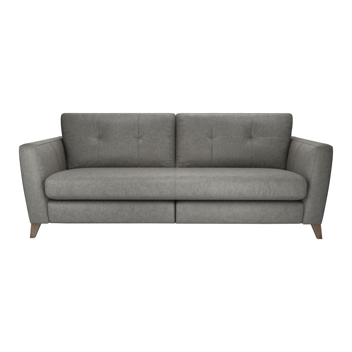 The perfect blend of contemporary design and mid-century influence, The Lounge Co. Hermione range offers effortless style and indulgent comfort with a retro feel. Its signature style brings relaxed sophistication to any living space. Enjoy the comfort of foam-filled seat cushions, fibre-filled back cushions and roomy sprung seats. Handcrafted in Britain with buttoned back cushion detailing and elegantly tapered washed oak legs, it promises to add style and comfort to your home. Available in a range of gorgeous colours, contemporary fabrics and soft leather. Exclusive to Furniture Village. Blend of retro and contemporary style. Soft leather upholstery. Handcrafted in Britain. On-trend and brimming with signature style, The Lounge Co. Hermione Four Seater Leather Sofa is a perfect blend of retro influence and contemporary design. Handcrafted in Britain, this stylish sofa offers comfort and style that the whole family can enjoy in total comfort. Plus, it’s perfect for smaller spaces like studios and flats thanks to its compact design. With foam-filled seat cushions and fibre-filled back seat cushions resting on sprung seats, the comfort on offer is truly indulgent so that you can get down to the serious business of relaxing as soon as you get in. Soft leather upholstery is beautifully accented by tapered washed oak feet and button detailing on the back cushions for a mid-century feel. Exclusively available at Furniture Village, this stylish four seater leather sofa is part of the handcrafted and retro-inspired Hermione range from The Lounge Co. Did you know?. Natural leather has unique marks and characteristics with variance in colour and texture, and softens with use.