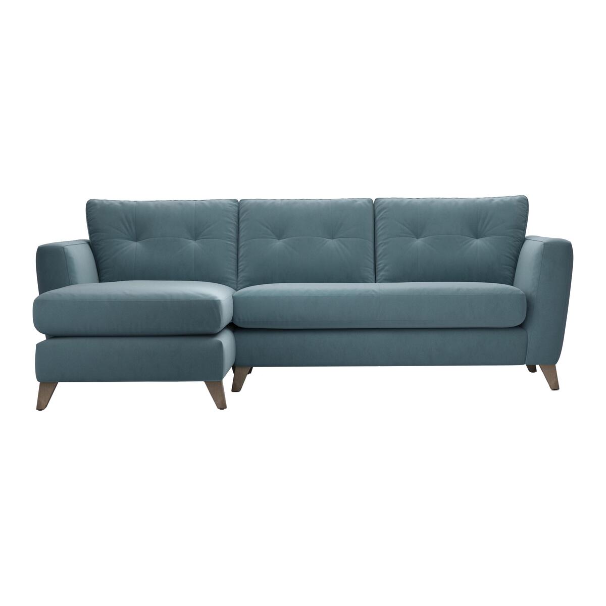 The perfect blend of contemporary design and mid-century influence, The Lounge Co. Hermione range offers effortless style and indulgent comfort with a retro feel. Its signature style brings relaxed sophistication to any living space. Enjoy the comfort of foam-filled seat cushions, fibre-filled back cushions and roomy sprung seats. Handcrafted in Britain with buttoned back cushion detailing and elegantly tapered washed oak legs, it promises to add style and comfort to your home. Available in a range of gorgeous colours, contemporary fabrics and soft leather. Exclusive to Furniture Village. Blend of retro and contemporary style. Choice of beautiful, soft fabrics. Handcrafted in Britain. A perfect blend of retro and contemporary style, The Lounge Co. Hermione Fabric Corner Sofa with Chaise End is a simple yet sophisticated design for the modern home. Handcrafted in Britain, beautiful button detailing on the back cushions and elegant, tapered washed oak feet create a beautiful, mid-century feel that looks stunning in any living space. Upholstered in a luxe, soft fabric, this sofa offers an indulgent sit with sumptuous cushioning on offer with foam seat cushions, fibre-filled back cushions and sprung seats to sink into. With its clean lines and compact size, it fits snugly into cosy living rooms and studios alike. We also offer this design with vintage oak or walnut legs. Only available at Furniture Village, this stylish retro sofa is part of the beautifully handcrafted Hermione range from The Lounge Co. Top tip. Some fabrics can show wear on areas of more use or in direct sunlight. To keep your fabric upholstery looking fresh, plump, turn and rotate seat and back cushions regularly if possible.