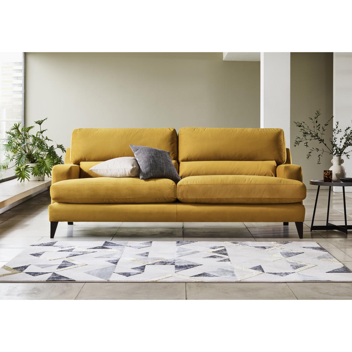 Modern and oozing with contemporary style,The Lounge Co. Romilly range is perfect for the style-conscious and comfort-seekers alike. Lend your space sophisticated style with its clean-lined silhouette and plush upholstery. Foam-filled seats and fibre-filled back cushions with lumbar support create a truly comfortable sit. Boxy arms and tapered legs complement its high back design, creating the perfect contemporary sofa. Available in a choice of stylish fabrics, leathers and colours and with a selection of leg options and a fibre interior. Exclusively handcrafted in Britain for Furniture Village. Sleek, modern and oozing with contemporary style, our Romilly three-seater sofa is the perfect sofa for the modern home thanks to its clean lines, high back and modern box arms. Why you'll love it Cool, contemporary and so very comfortable. Modern silhouette suits all kinds of living spaces. Ultra-soft fabric upholstery in a wide choice of fashionable colours. High-back comfort with deep and well-cushioned seats. Back cushion design provides extra lumbar support. With stylish box arms and tapered walnut-finish wood legs. This sofa is also available with 100% leather upholstery. Handcrafted in Britain exclusively for Furniture Village. This 3-seater fabric sofa is part of The Lounge Co. Romilly range. What you need to know Medium comfort level. Seat suspension: serpentine springs. Seat cushioning: foam. Back support: elastic webbing. Back cushioning: fibre. To maintain cushion fullness, be sure to plump daily. Some fabrics can show wear on areas of more use or in direct sunlight. Flattening and shading of heavy wear areas on pile fabrics is unavoidable. Clean regularly using a soft brush or vacuum with the curtain attachment. Deal with any spills promptly. Professional cleaning advised for oil- and grease-based stains. Please read our upholstery care guide for more advice. Item code: ROML3S--FOA-054