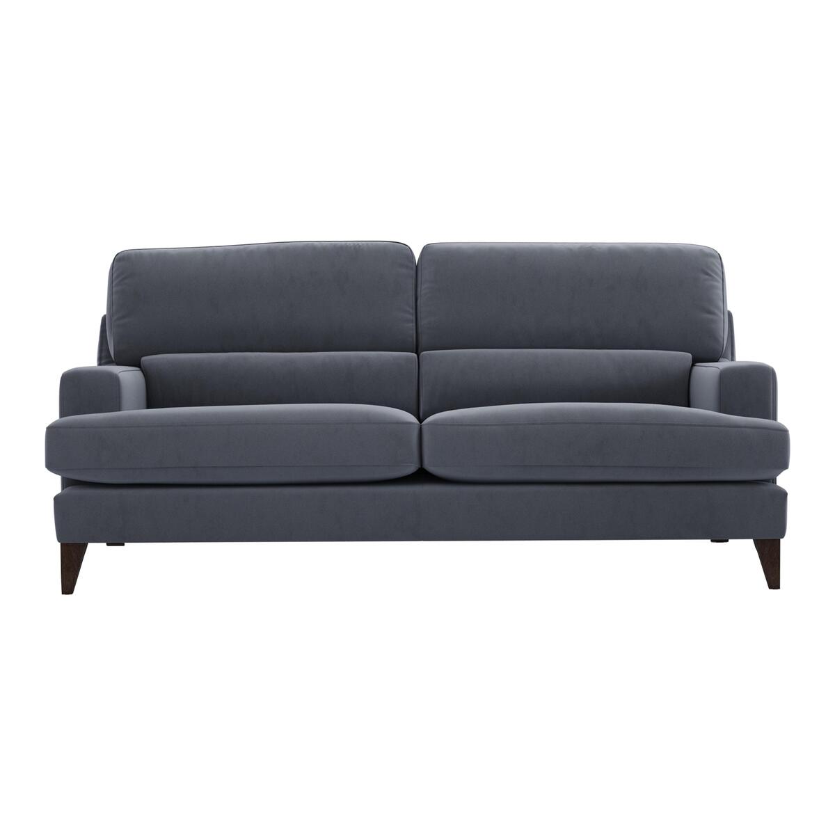 Modern and oozing with contemporary style, The Lounge Co. Romilly range is perfect for the style-conscious and comfort-seekers alike. Lend your space sophisticated style with its clean-lined silhouette and plush upholstery. Foam-filled seats and fibre-filled back cushions with lumbar support create a truly comfortable sit. Boxy arms and tapered legs complement its high back design, creating the perfect contemporary sofa. Available in a choice of stylish fabrics, leathers and colours and with a selection of leg options and a fibre interior. Exclusively handcrafted in Britain for Furniture Village. Modern design with lumbar cushion. Beautiful choice of soft fabrics. Handcrafted in Britain. Sleek, modern and oozing with contemporary style, The Lounge Co. Romilly Three Seater Fabric Sofa is the perfect sofa for the modern home. With its clean lines, high back, modern box arms and tapered walnut legs, its grand silhouette takes centre stage in any living room. This sofa doesn’t skimp on comfort either with indulgently soft-feel fabric upholstery and a supportive lumbar cushion design so you can get comfy in real style. Sink into roomy sprung seats, foam-filled seat cushions and fibre-filled back cushions and discover what it feels like to completely relax. You can stretch out just you or share with the whole family. Handcrafted in Britain by expert craftsmen, you can be sure of its high quality too. If you’d like a different look for your sofa, we offer this design with vintage oak or washed oak leg finishes, a fibre seat cushion option and in a range of stylish fabric and colour upholstery options. A Furniture Village exclusive, this sleek and stylish three seater fabric sofa is part of the handcrafted Romilly range from The Lounge Co. Top tip. Some fabrics can show wear on areas of more use or in direct sunlight. To keep your fabric upholstery looking fresh, plump, turn and rotate seat and back cushions regularly if possible.
