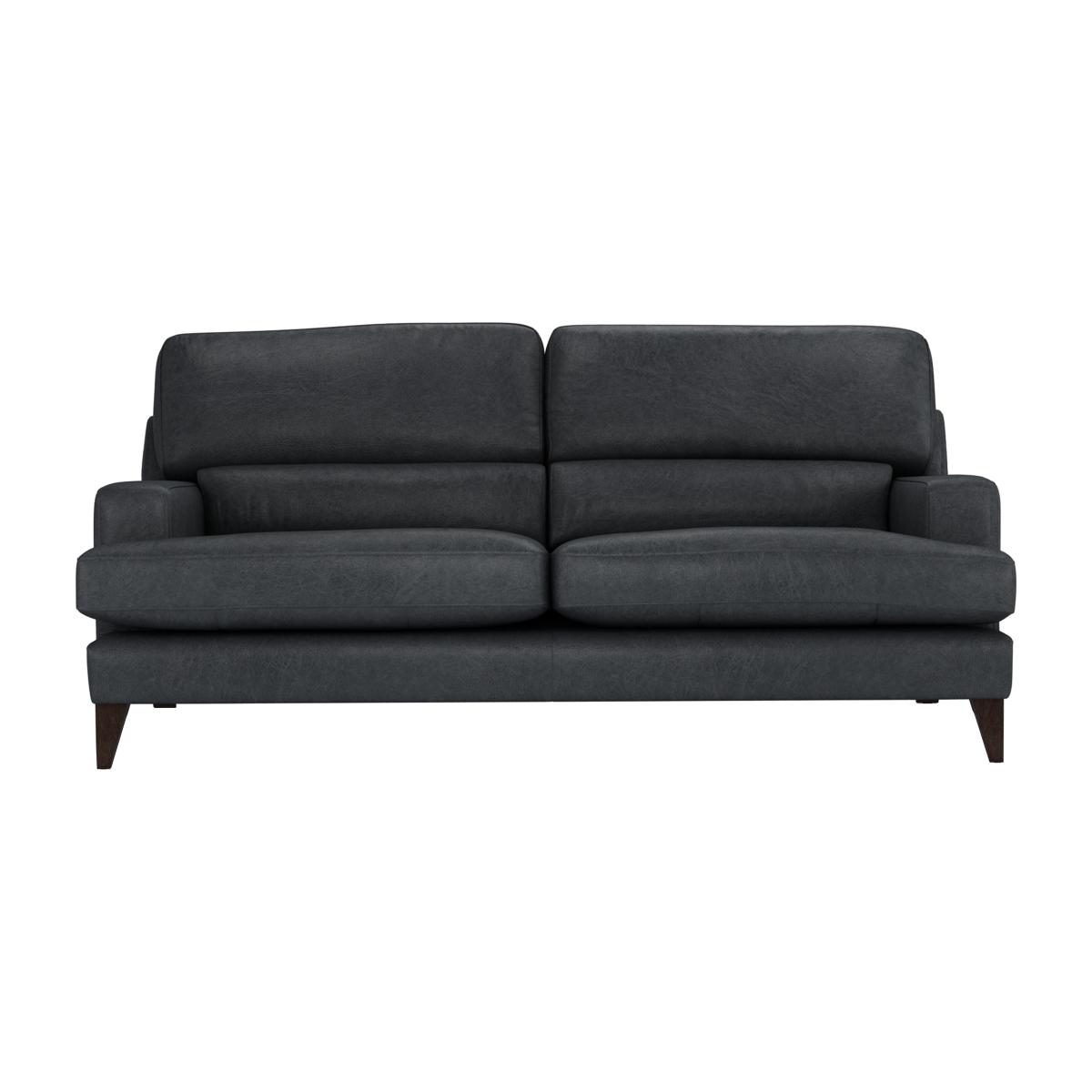 Modern and oozing with contemporary style,The Lounge Co. Romilly range is perfect for the style-conscious and comfort-seekers alike. Lend your space sophisticated style with its clean-lined silhouette and plush upholstery. Foam-filled seats and fibre-filled back cushions with lumbar support create a truly comfortable sit. Boxy arms and tapered legs complement its high back design, creating the perfect contemporary sofa. Available in a choice of stylish fabrics, leathers and colours and with a selection of leg options and a fibre interior. Exclusively handcrafted in Britain for Furniture Village. • Modern design with lumbar cushion • Soft, semi-aniline leather upholstery • Handcrafted in BritainModern with luxuriously soft leather upholstery, The Lounge Co. Romilly Three Seater Leather Sofa supports you in perfect comfort as you relax. With a lumbar cushion filled with fibre and a high back, you’re supported while being deeply cushioned in roomy foam-filled seat cushions resting on sprung seats. Transform your living space with its stylish, modern silhouette. Elegantly tapered walnut legs perfectly complement its clean sleek arms and modern boxy arms. It’s handcrafted in Britain by skilled craftsmen, so you can be sure every detail right down to the stitching is hand finished to the highest quality. We offer this sofa in a range of beautiful colours. Exclusively handcrafted in Britain for Furniture Village. Part of the modern, beautifully proportioned Romilly range from The Lounge Co. Did you know? Natural leather has unique marks and characteristics with variance in colour and texture, and softens with use.