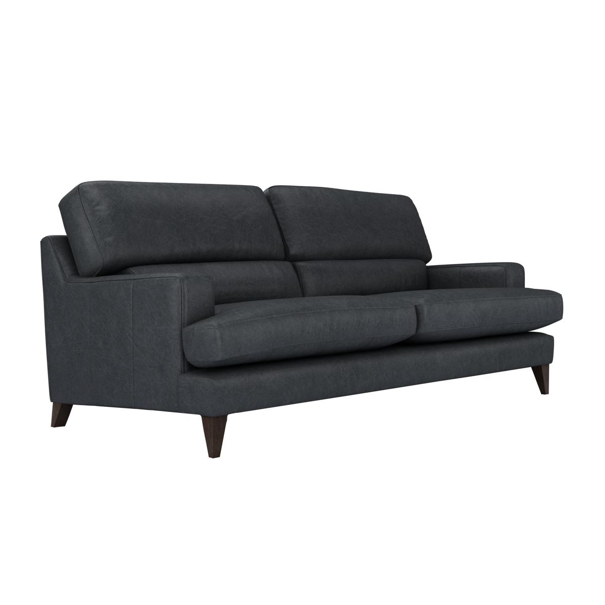 Modern and oozing with contemporary style,The Lounge Co. Romilly range is perfect for the style-conscious and comfort-seekers alike. Lend your space sophisticated style with its clean-lined silhouette and plush upholstery. Foam-filled seats and fibre-filled back cushions with lumbar support create a truly comfortable sit. Boxy arms and tapered legs complement its high back design, creating the perfect contemporary sofa. Available in a choice of stylish fabrics, leathers and colours and with a selection of leg options and a fibre interior. Exclusively handcrafted in Britain for Furniture Village. If you love modern style and sinking into perfect comfort every day, our fabulous Romilly four-seater leather sofa was made for you. Only at Furniture Village. Why you'll love it Cool, contemporary and so very comfortable. Modern silhouette suits all kinds of living spaces. Beautiful 100% leather upholstery in a choice of fashionable colours. High-back comfort with deep and well-cushioned seats. Back cushion design provides extra lumbar support. With stylish box arms and tapered walnut-finish wood legs. Handcrafted in Britain exclusively for Furniture Village. This 4-seater leather sofa is part of The Lounge Co. Romilly range. What you need to know Medium comfort level. Seat suspension: serpentine springs. Seat cushioning: foam. Back support: elastic webbing. Back cushioning: fibre. To maintain cushion fullness, be sure to plump daily. Leather has unique marks and characteristics with variance in colour and texture. Leather softens with use. Smoothing the tops of leather cushions prevents signs of visual comfort. Please read our upholstery care guide for more advice.