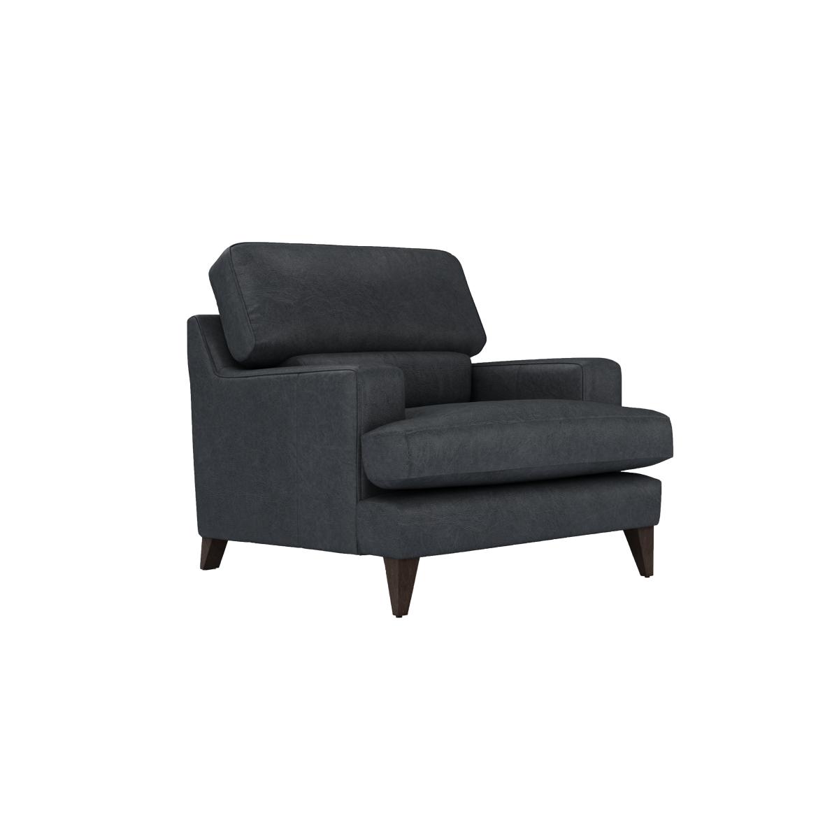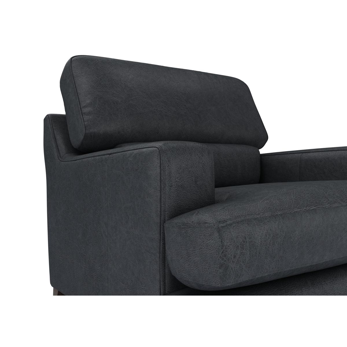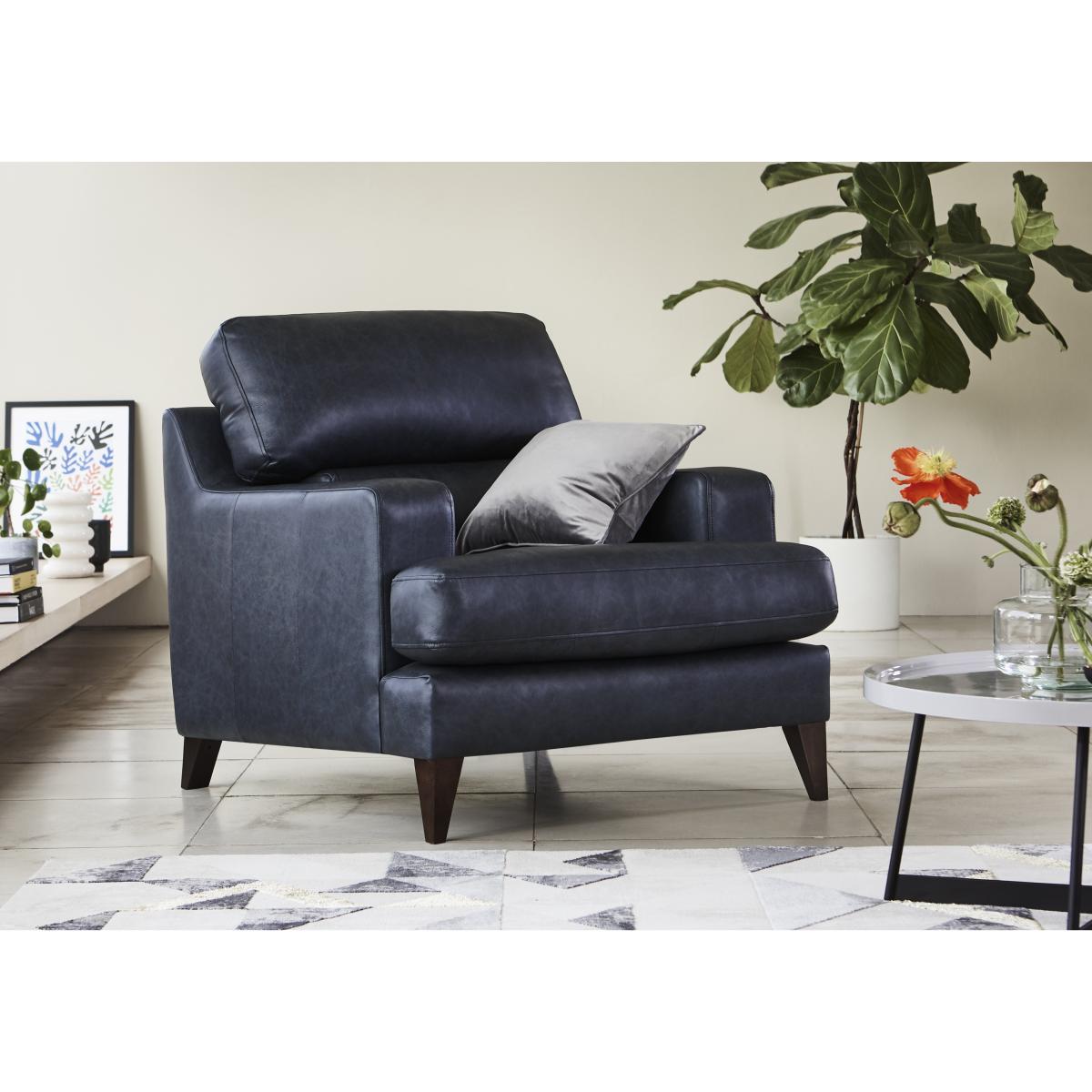 Modern and oozing with contemporary style,The Lounge Co. Romilly range is perfect for the style-conscious and comfort-seekers alike. Lend your space sophisticated style with its clean-lined silhouette and plush upholstery. Foam-filled seats and fibre-filled back cushions with lumbar support create a truly comfortable sit. Boxy arms and tapered legs complement its high back design, creating the perfect contemporary sofa. Available in a choice of stylish fabrics, leathers and colours and with a selection of leg options and a fibre interior. Exclusively handcrafted in Britain for Furniture Village. Treat yourself to indulgent comfort. Our handcrafted and very stylish Romilly armchair is beautifully upholstered in soft leather and has a sprung seat, supportive high back and extra lumbar cushioning. Why you'll love it Cool, contemporary and so very comfortable. Modern silhouette suits all kinds of living spaces. Beautiful 100% leather upholstery in a choice of fashionable colours. High-back comfort with a deep and well-cushioned seat. Back cushion design provides extra lumbar support. With stylish box arms and tapered walnut-finish wood legs. Handcrafted in Britain exclusively for Furniture Village. This leather armchair is part of The Lounge Co. Romilly range. What you need to know Medium comfort level. Seat suspension: serpetine springs. Seat cushioning: foam. Back support: elastic webbing. Back cushioning: fibre. To maintain cushion fullness, be sure to plump daily. Leather has unique marks and characteristics with variance in colour and texture. Leather softens with use. Smoothing the tops of leather cushions prevents signs of visual comfort. Please read our upholstery care guide for more advice. Item code: ROMLCH--FOL-027