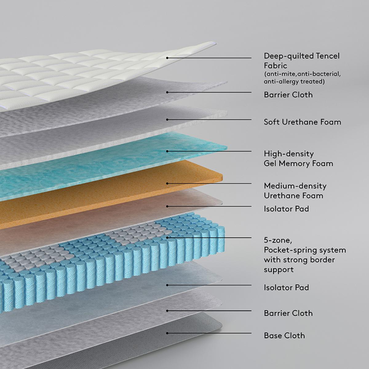 The. My Furniture Luxury Mattress. Is a refined and beautifully crafted design, created to bring hotel-inspired comfort and elegance into your bedroom. With a medium-firm feel and a depth of 25cm, it offers a superb balance of support, pressure relief, and comfort for restful sleep night after night. The quilted surface is finished in breathable Tencel® fabric — naturally antibacterial, mite-resistant, and hypoallergenic — ensuring both freshness and durability. A classic Euro-top design enhances the mattress’s comfort while adding a touch of timeless style. Inside, a five-zone, foam-encased pocket spring system delivers targeted support across the body, helping to maintain orthopaedic alignment and minimise partner disturbance. High-density gel memory foam is layered with soft and medium-density urethane foams to provide adaptive cushioning and lasting comfort, supporting every movement with ease. Conveniently compressed and rolled for delivery, the Luxury Mattress is simple to move, unpack, and install. To enhance its value, it comes complete with a complimentary mattress protector and sheet clips. The Luxury Mattress offers the perfect blend of elegance, performance, and durability. Enjoy a 100-night trial — giving you plenty of time to be sure it’s right for you (see T&Cs for full details). Relax knowing you’re covered with our 3-year warranty (see T&Cs for full details).