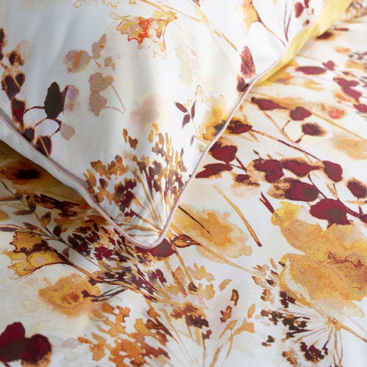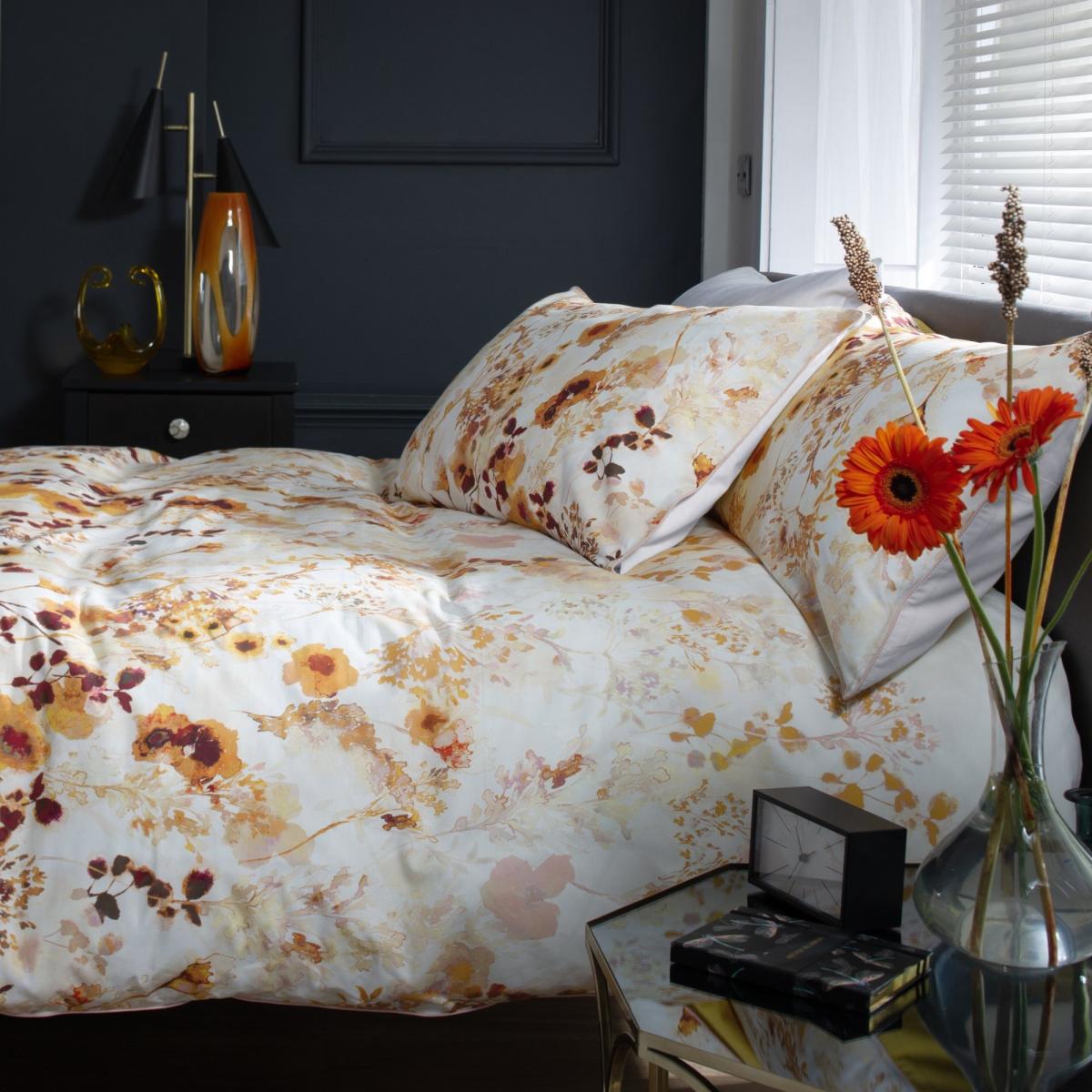 Invite the warmth and charm of autumn into your bedroom with the Lyndon Company Watercolour Floral Spice Duvet Set in Orange. Crafted from soft, 100% cotton with 180-thread count, this set features a beautifully subdued painterly floral print in golden spice, orange and burgundy hues—evoking cosy, traditional comforts. The reverse side is gently plain-dyed, giving a quieter, pared-back alternative when you prefer a more subtle look. Finished with neat contrasting piping around the edges, it gives a nod to careful tailoring and timeless attention to detail. 100% Cotton Thread Count: 180 Double, King and Superking Size Duvet Cover SET Includes Pair of Pillowcases Care Instructions Machine washable at 40 degrees Sizes Double Duvet Cover: 200cm x 200cm Kingsize Duvet Cover: 230cm x 220cm Super Kingsize Duvet Cover: 260cm x 220cm All screens vary in colour reproduction and whilst every effort has been made to display the colour as accurately as possible it is for guidance only