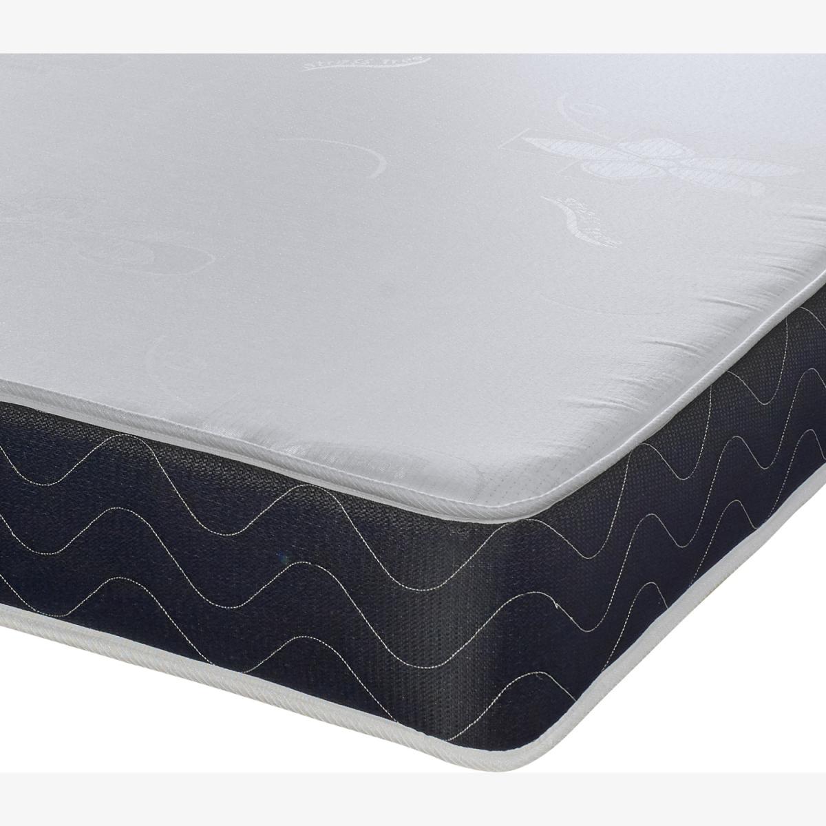 Great for bunk beds, cabin beds, day beds etc. Please do check the size of your base before ordering as these will be difficult for you to return. This is our Stress-Free Essentials Black Border Flat Top 17cm Deep Basic Hybrid Mattress. It has a double insulated European engineered open coil Bonnell spring unit with deep polyester comfort fillings (75 minimum recycled content), a layer of high-density visco-elastic memory foam and a Stress-Free Flat Top. It has a black wavy design border and is 17cm deep. Ideal as a spare room mattress, great for kids or those on a budget, it is a medium soft feel mattress containing springs, comfort layers and a layer of high-density visco-elastic memory foam with a single sleeping side. You should rotate your mattress regularly to get the best from it. These are UK-made mattresses, produced in our West Yorkshire factory and are fully compliant with all relevant UK fire safety regulations for domestic use. We compress vacuum pack and roll these mattresses so that they can be delivered quickly and cheaply to your door. You will need to allow a few hours after opening your bed to regain its shape and size. As these are produced with fresh, new memory foam, you may need to air them in a dry, well-ventilated room, for up to 24 hours prior to use.