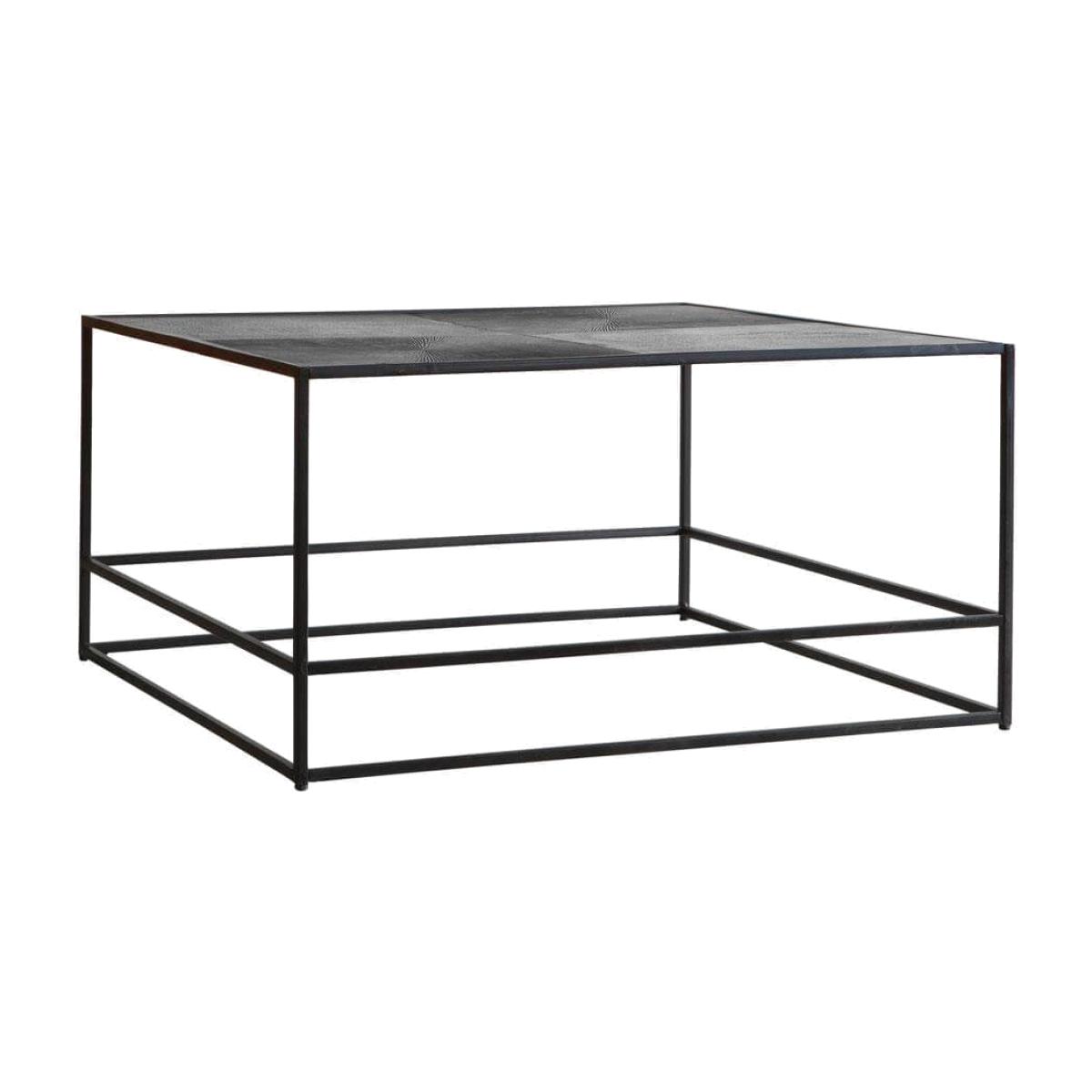 A table of refinement and class, The Metal Frame Coffee Table Antique Silver casts a sophisticated modern silhouette in the home. The slimline brushed metal legs adjoin with flat floor bars, forming a pleasing modernist cube aesthetic. This silver shade coffee table is bound to begin conversation with its interesting and delicate looking tabletop made from four contrasting panels. On one set of panels is an etched starburst design, slightly ridged to the touch, on the other two a dappled and burnished effect. This modern metal furniture will fit nicely with other neutral colour décor and with a wide 80cm squared surface also gives plenty of room for placing drinks, ornaments or magazines.