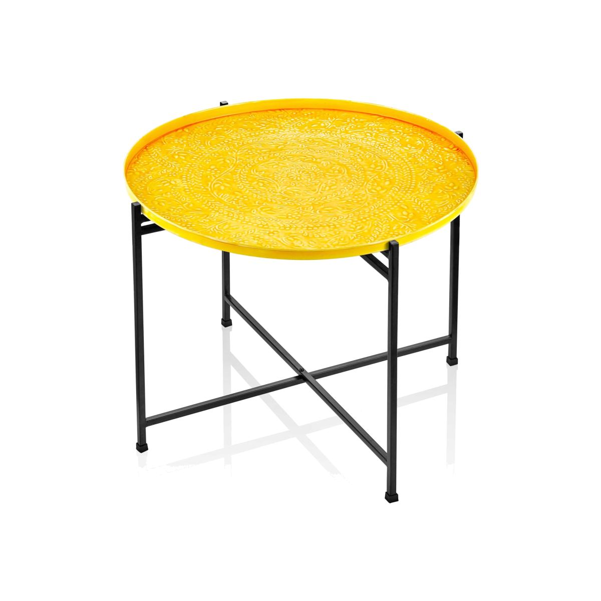 I love this colourful coffee table because it adds a playful yet chic statement to a variety of interiors. Its bright mustard yellow works particularly well in contemporary, Scandinavian, or eclectic schemes, bringing warmth and a pop of colour without overwhelming the space. For styling, consider pairing it with neutral or monochrome sofas to let the table stand out, and use layered textiles and accessories to create a relaxed vibe. It's practical too - its round shape softens angular furniture arrangements, making it flexible to incorporate into different layouts. Overall, this piece is perfect for injecting personality into a living room while remaining functional and stylish.
