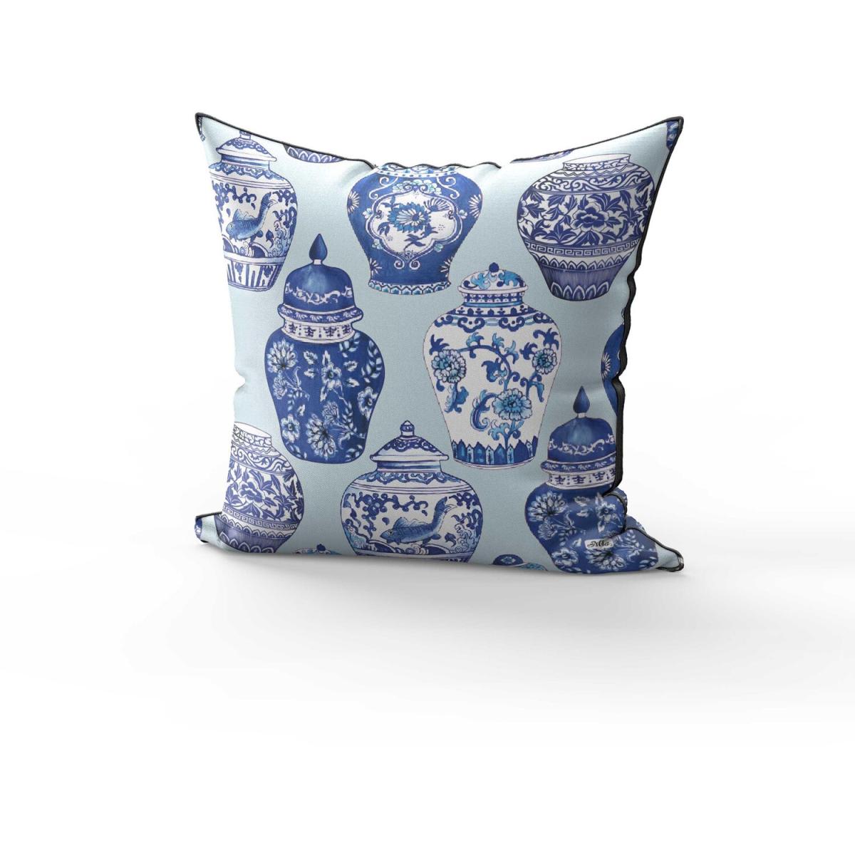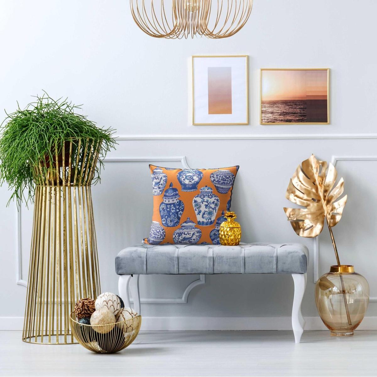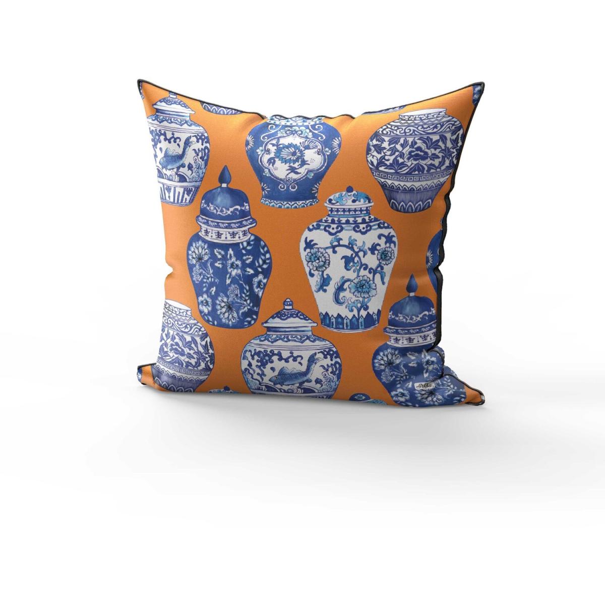 The Mia Vase Bleu Blanc Cushion - Light Orange