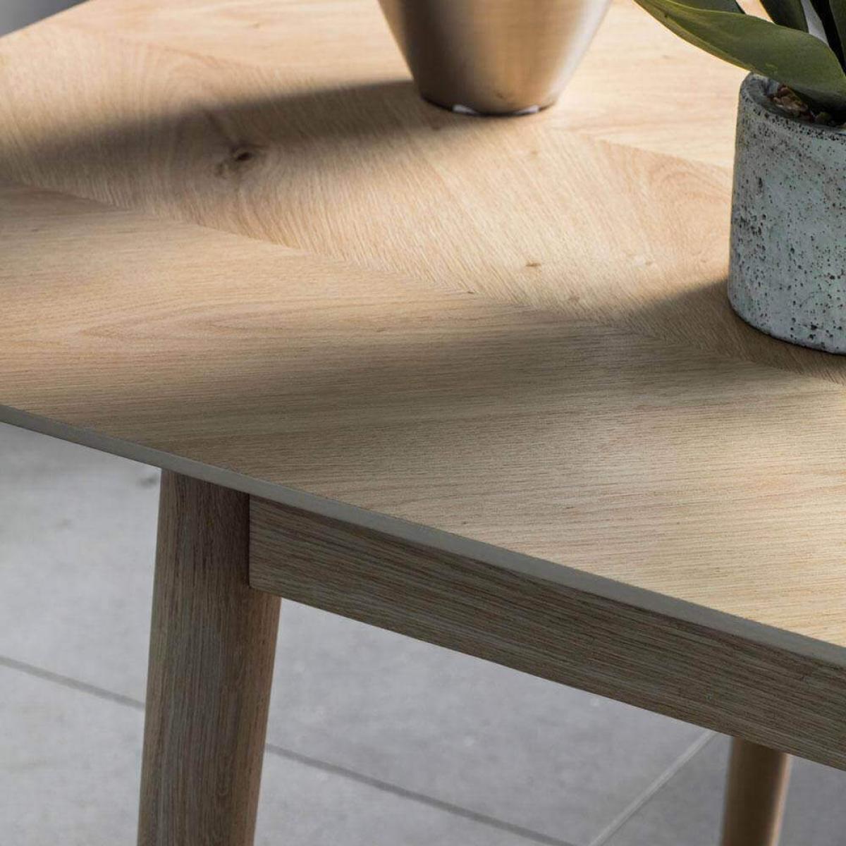 The Modern light oak 8-10 seater extending dining table is stylish and offers versatility. The beauty of this table is in its simple design. The sleek lines, pale wood and mat lacquer finish makes this table look and feel Scandinavian. Its central extending leaf means that you can seat up to 10 people, possibly more if you team with The Modern dining bench, but for day-to-day living you can keep it that bit smaller. This oak veneer and solid oak table has a good amount of surface area for working, eating, drawing or whatever you plan on using it for and the rest of the frame is slim enough so it looks more spacious than chunkier tables of a similar length. Easy to assemble, this table would be an excellent addition to any home, complementing most decors and styles.