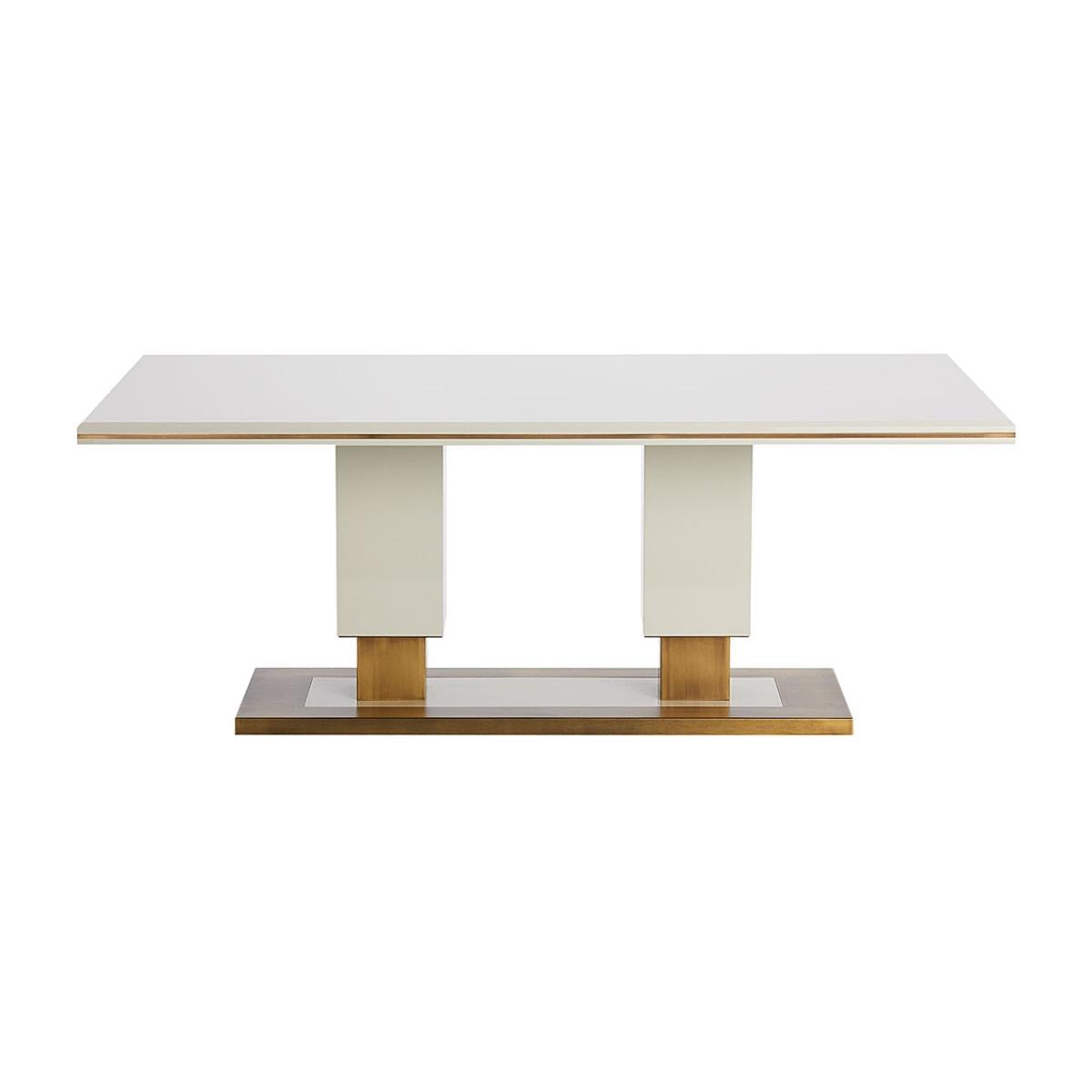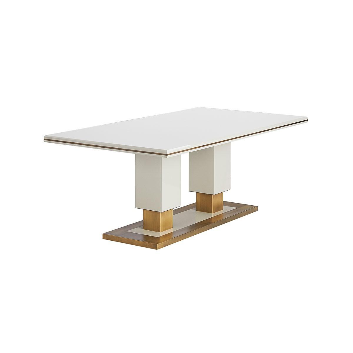 The Monty dinner table with metal structure in antique brass base and inlays. High gloss finish to table top and legs.