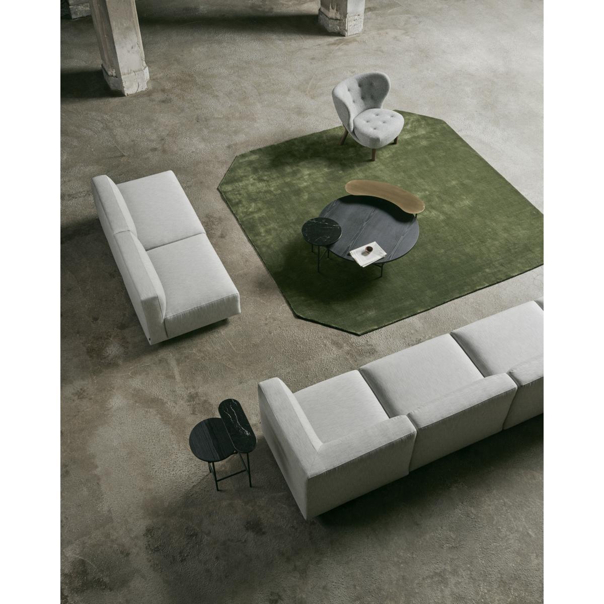 With its cut corners, the Moore rug has a shape inspired by precious stones. The Danish studio All the way to Paris explains: ''We wanted to focus only on shape, colour and texture, without any pattern. '' Silky and sensual, velvet has a sophisticated, sumptuous character, a retro, glamorous charm. The shiny material shows off the deep colour. Depending on the direction of the pile and the light, the colour of the rug takes on a more or less pronounced hue, like a gemstone. This rug lends softness and warmth to the most minimalist decor.