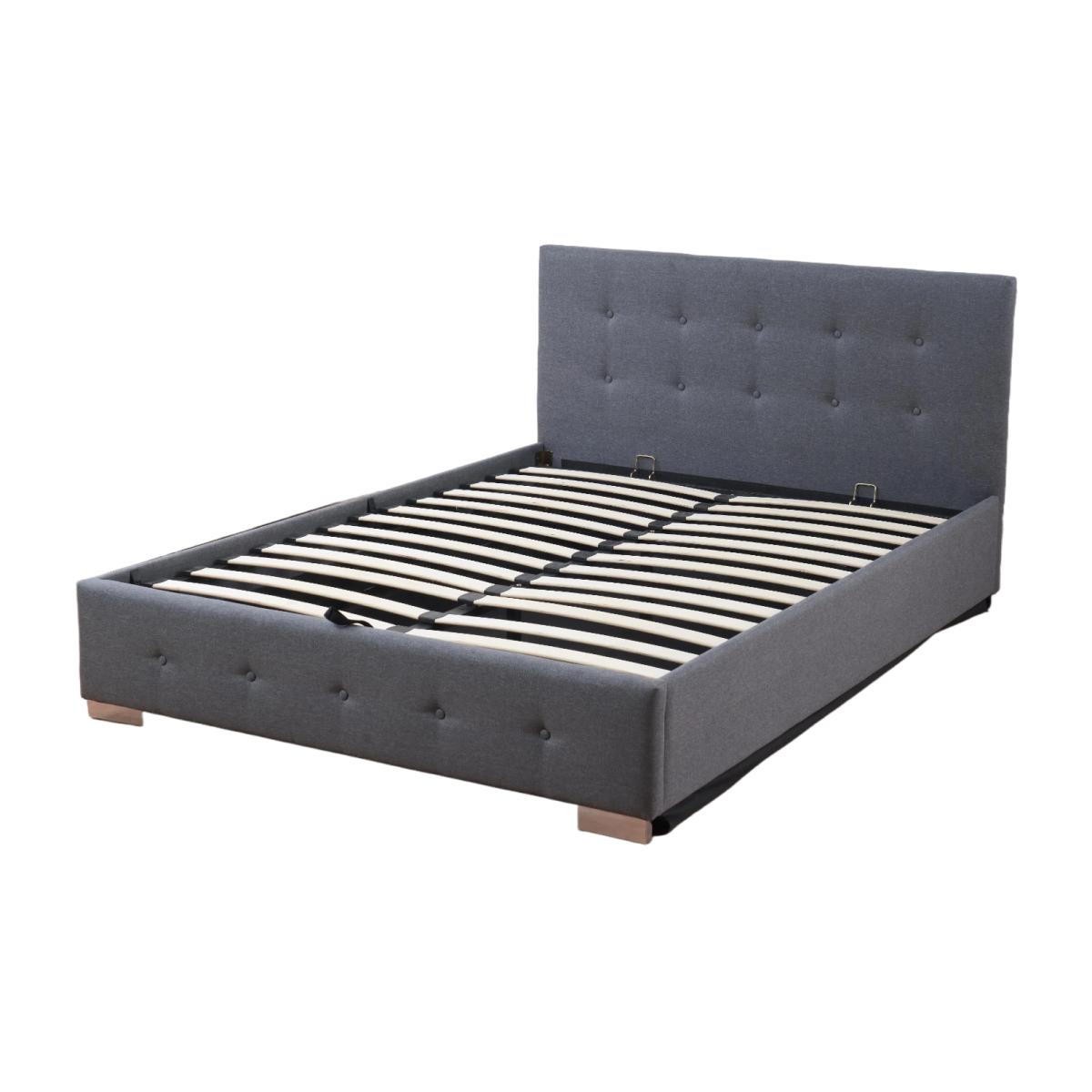 Elevate your bedroom with The Oslo Storage Bed, where contemporary design meets everyday functionality. Upholstered in a grey fabric, this statement piece features a beautifully tufted headboard and matching side panels that exude understated sophistication. Beneath its sleek silhouette lies a spacious hidden compartment, easily accessed via a smooth gas-lift mechanism supported by sturdy metal hinges. Ideal for storing bedding, seasonal items, or anything you want tucked away but close at hand. The Oslo's clean lines and neutral palette make it a versatile fit for both minimalist and cozy interiors, while its smart storage solution helps you reclaim your space without compromising on style. Whether you're refreshing a guest room or upgrading your master suite, The Oslo Storage Bed is the perfect blend of form and function. Size: 135 x 190cm Headboard Height: 90cm Footboard Height: 37cm Height of the bed: 37cm Bed legs :5cm
