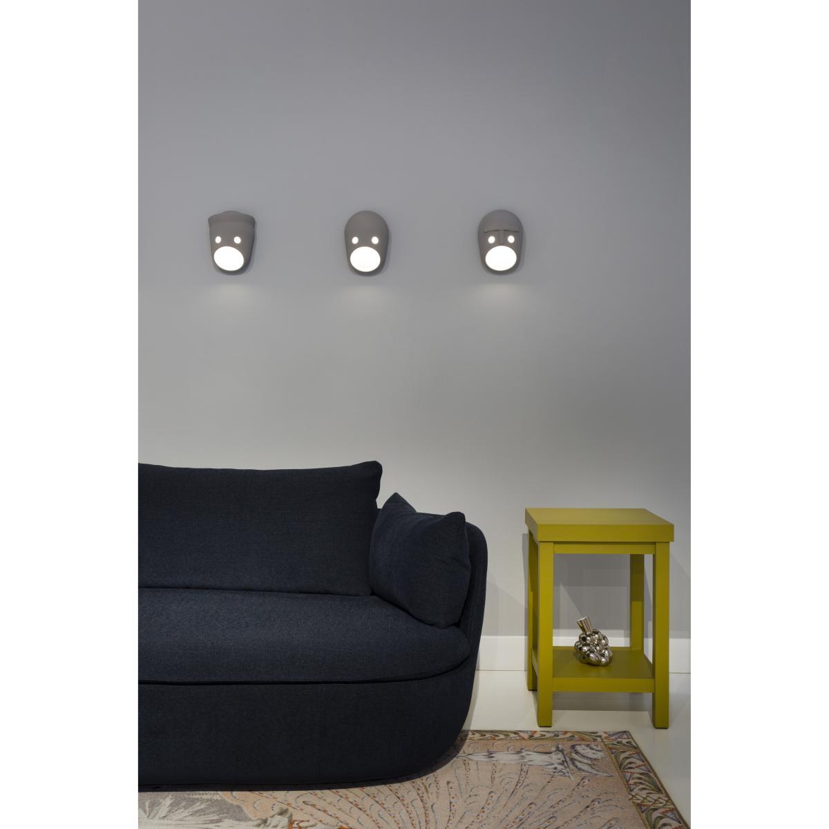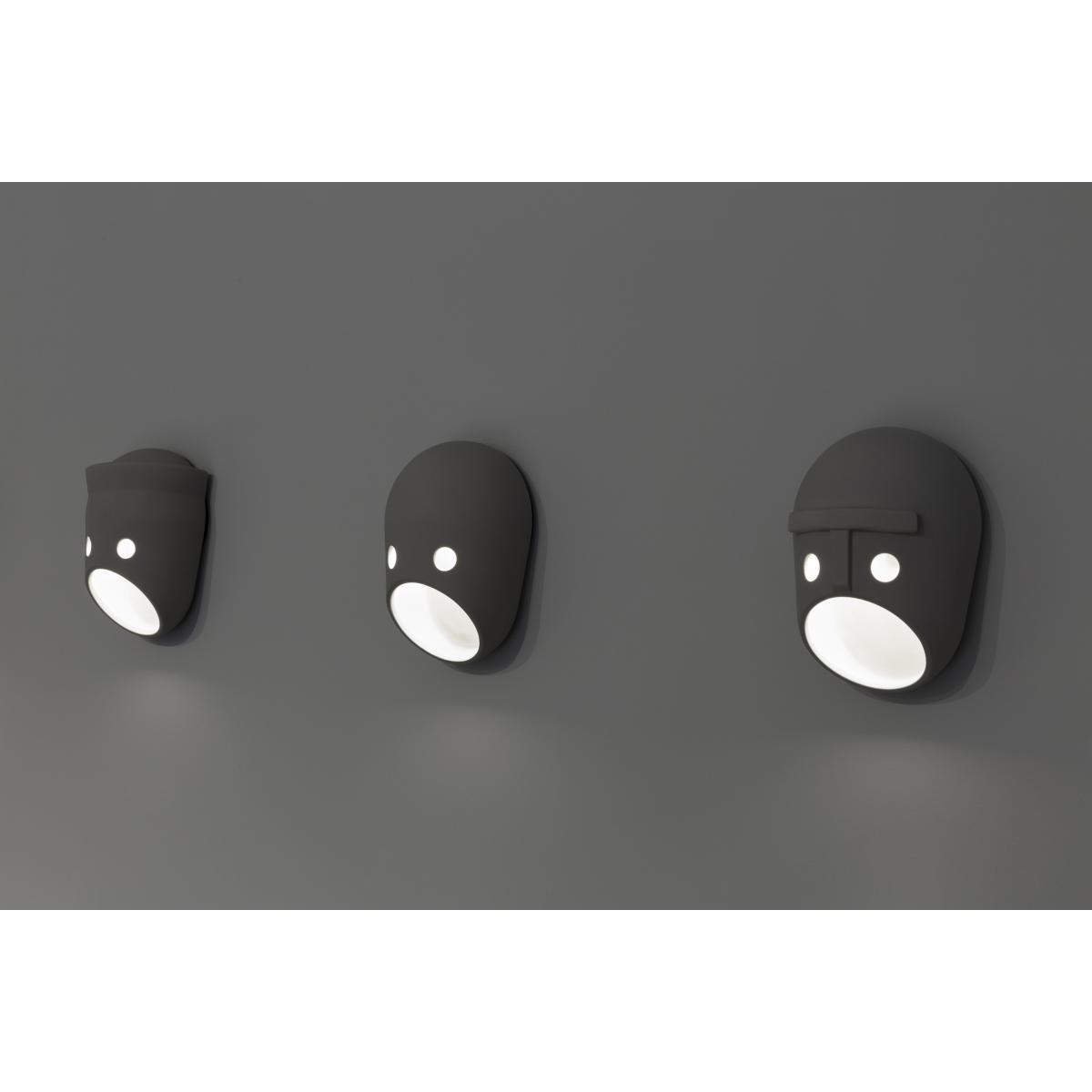 Moooi presents "The Party" collection, created by the designer duo of Kranen/Gille. This is a family of LED wall lights inspired by a clan of powerful and captivating personalities. Their cast ceramic faces reveal our fascination for secrets, family dynamics and intrigue. When seen together, at a wonderful party, they brighten up the scene with their "cool" attitude. Yet behind the facade, a mischievous side percolates through and touches our imagination. The characters who join the party each have a fascinating story that connects them: first there’s the one who wants to be an aristocrat, then the black sheep, then the opportunist, the patriot and finally the evil mastermind. Fragments of their personalities appeal to part of our character that we prefer to hide, stimulating recognition, interest and curiosity! These lamps display an obvious resemblance at first and share the same feel to the touch, which results in a subtle roughness provided by the granular ceramic finish. They nevertheless stand apart due to a style and details that are unique to them. Once combined all together, they add a very decorative playful note to your interior! Presentation of The Party family members: The Mayor: This is the first member of The Party. The Mayor thinks only of himself and literally views the world through his monocle. The Mayor is a character with a deeply fascinating and controversial personality. Bert: A dark member of The Party. Bert is brilliant, full of potential but inevitably blinded and embittered by pure jealousy. This character is intriguing, with a face that hides his real feelings behind a grudge that will eat away at him all his life. Coco: The only woman in The Party! Coco is a self-taught woman with a quick wit who soon learned to take care of herself in life. Coco is the archetypal woman, mother and lover who is ready to do anything to change her destiny. Glenn: The patriotic heart of The Party. Glenn is marked by his turbulent youth, seeking clarity through ideology and order. This man has a mission, searching for light over an ocean of darkness. Ted: This is the evil mastermind of The Party! This ferocity is in fact the result of a difficult youth. Ted is tempted to follow the wrong path impulsively, throwing himself in head first. He is the most exposed character, with a face with nothing to hide.
