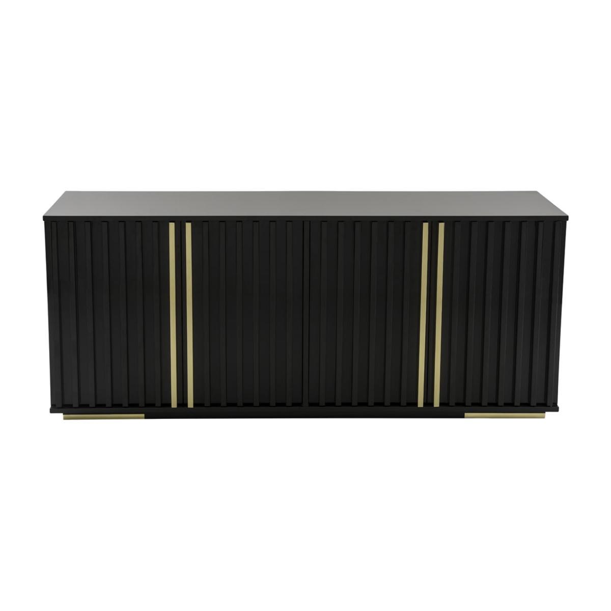 I’m a big fan of the Passos sideboard for its clean lines and subtle fluting - the matt-black finish paired with brass accents gives it just enough character without overwhelming a room. It works equally well in a contemporary living area, a minimalist hallway or even as a sleek buffet in a dining space. To style it, keep the top surface uncluttered: a low-profile lamp on one end, a couple of art books or a small tray in the middle, and a sculptural vase or plant on the other. Inside, use matching baskets or boxes to corral smaller items so the doors always close neatly. Against a neutral wall it pops; against a deeper-toned backdrop it feels more integrated.