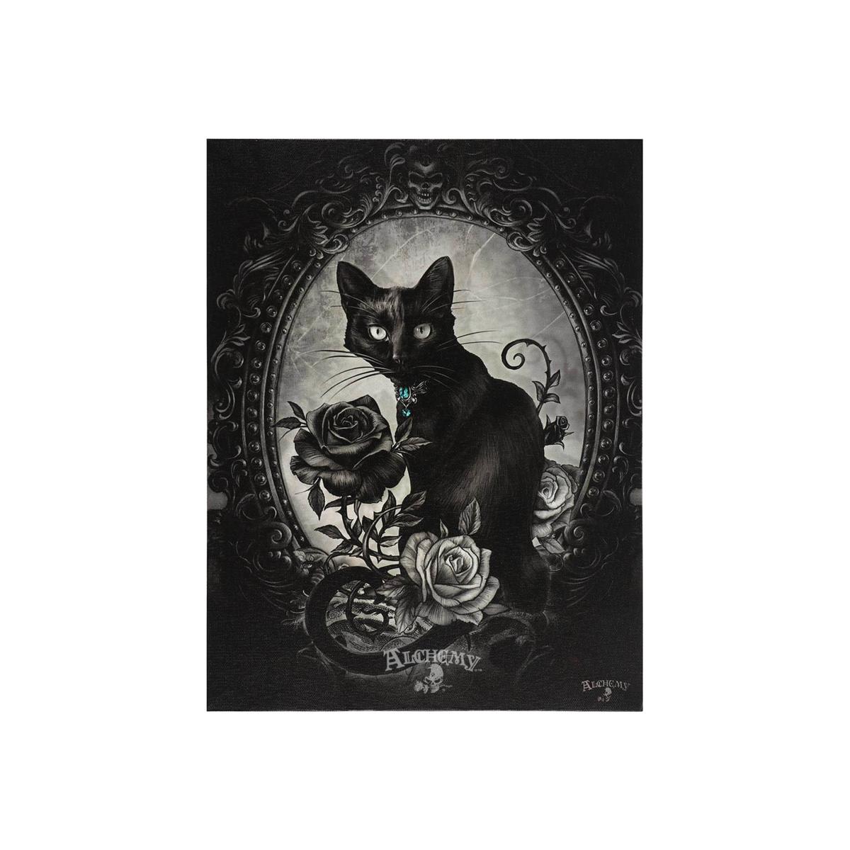 This small canvas plaque features Paracelsus The Philosopher's Familiar artwork by the popular Alchemy Gothic of London. A black cat sits amongst thorned roses in this stunning, greyscale piece.