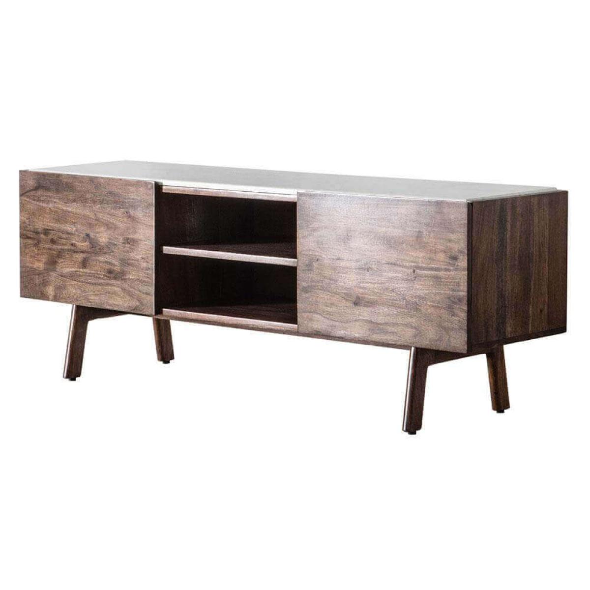 The Retro media cabinet gives a bit of a modern twist to a mid century design – offering two doors for storage and the centre section for media appliances – the white marble topis also an eye catching yet practicalfeature for any room. This item epitomises 1970s sideboards/media unit style.