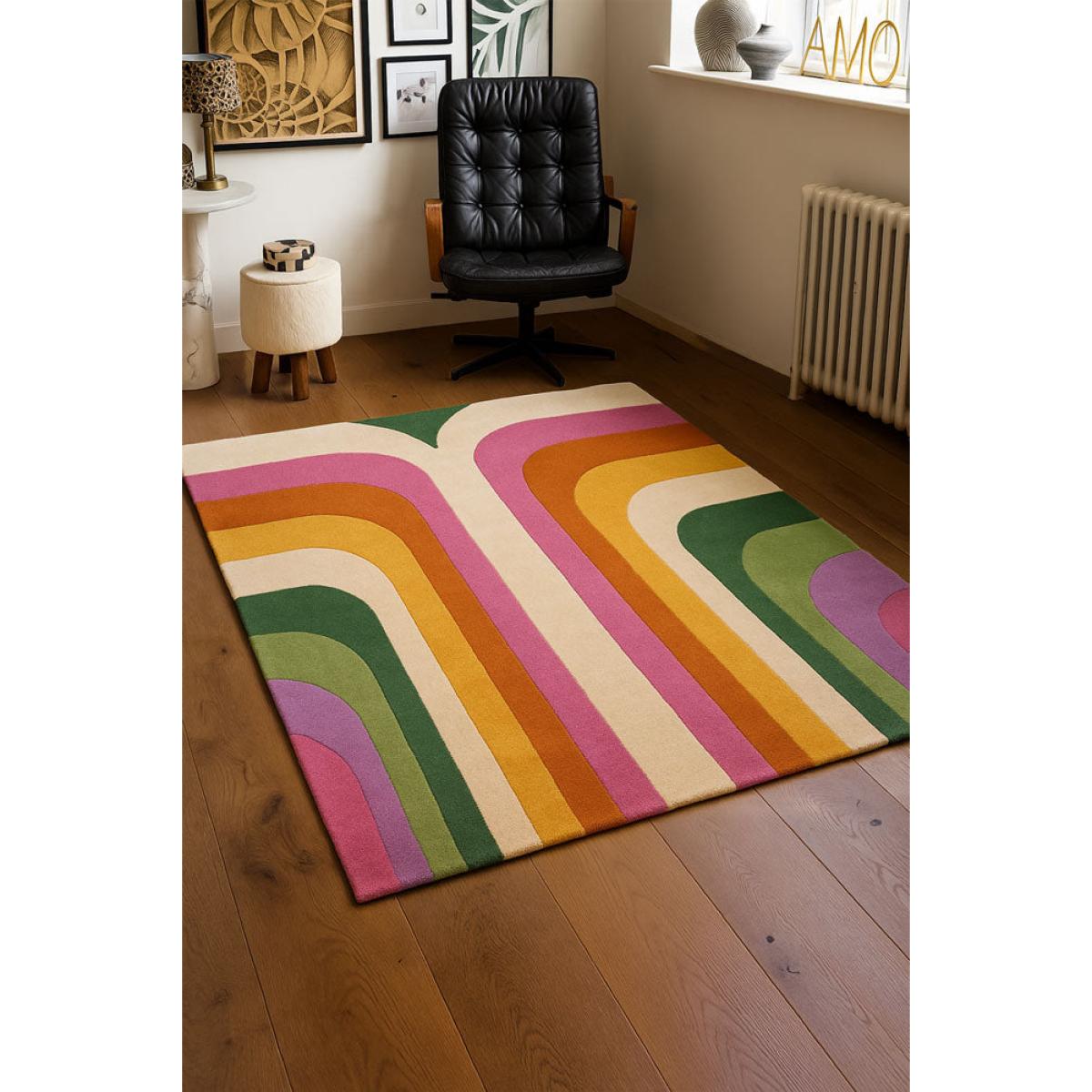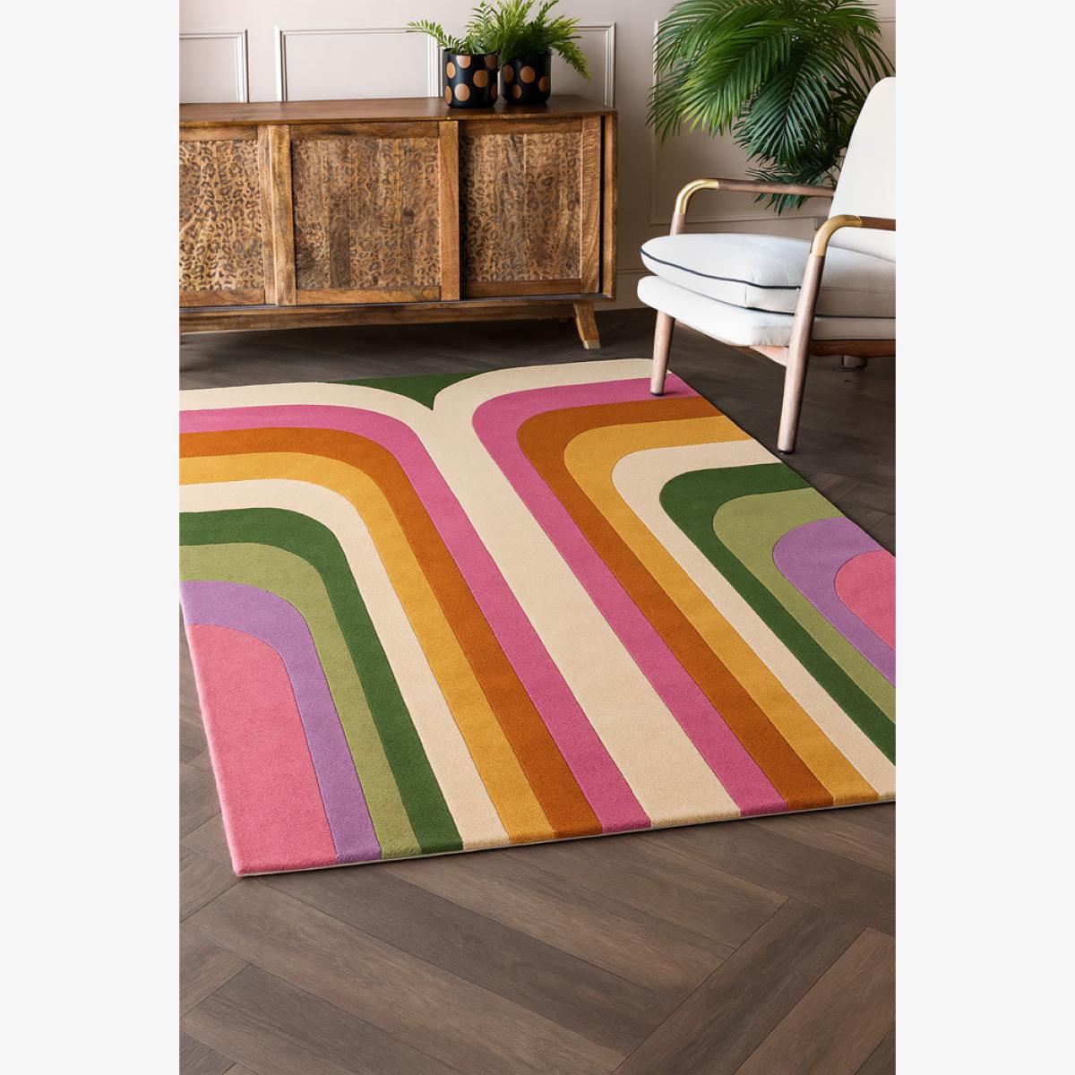 Meet the Romy Retro Rug in Pink – the bold, planet-friendly hero your floors have been waiting for. Serving 70s vibes with a modern twist, this living room rug brings a sleek, wavy flow of colours from top to bottom. Think pops of pink balanced with mellow tones of green, cream, terracotta and more. It’s like a sunset for your living room. Available as small, large and extra large rugs, each one is perfect whether you’re styling a cosy corner, brightening up a hallway, or going all-out in the living room. And get this – it’s made from recycled plastic bottles. Yep, your new modern rug is doing its bit for the planet while looking absolutely fabulous. - The Romy Retro Rug in Pink - Available in 3 Sizes - Measures: W120cm x L170cm- W160cmxL230cm - W200cm x L290cm - Materials: 100% PET