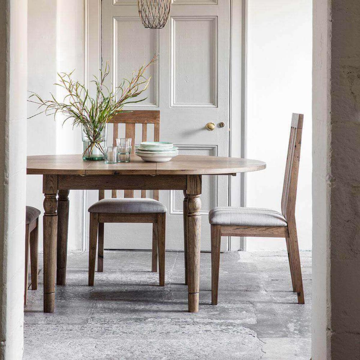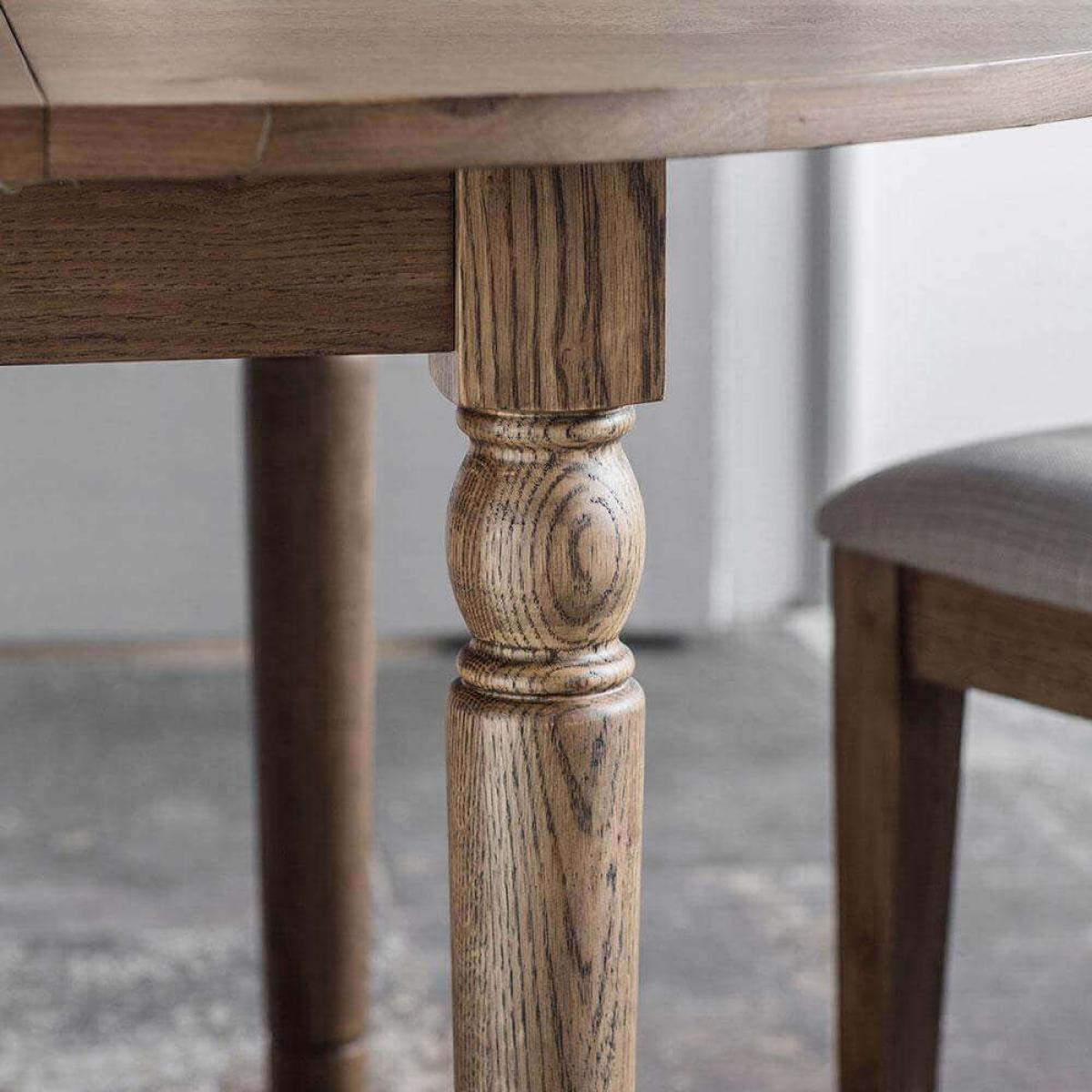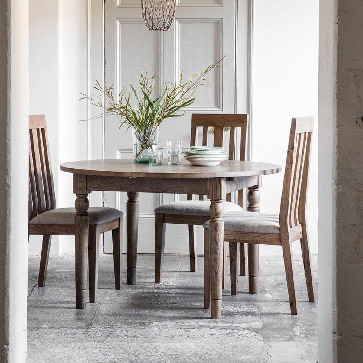 If you are after a more traditional design dining set then the Rural Round Extending Oak Dining Table Set in Smokey Oak is for you. Order today to have within 5-8 working days. Set includes: Rural Round Extending Oak Dining Table in Smokey Oak 4 x Rural Oak Dining Chairs in Smokey Oak Set price represents a 10% saving when compared with buying all the items individually. About The Rural Range Traditional design crafted from beautiful oak veneer and solid oak in a 'smoked' finish Butterfly leaf extension provides flexibility to increase the number of people the table can accommodate Matching dining chairs with a stylish light grey cushion for comfort