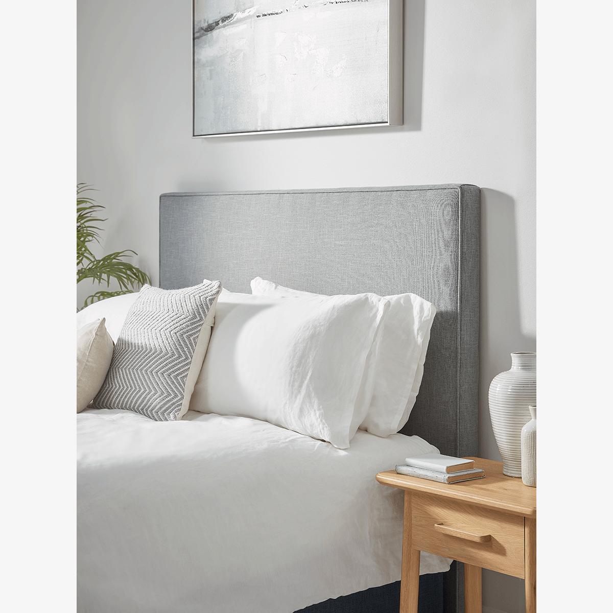 As you would expect, our Scandi Headboard is simple, but effortlessly chic addition to your bedroom. Impressive proportions will make your bed the centre of attention, the perfect template for some boutique hotel inspired bed dressing. Pile the pillows high in preparation for some stylish slumbers. Handmade in the UK, our headboard is available in three sizes – double, kingsize and super king and is designed to complement our Lina Storage Bed Base. Seen here in Grey, it is also available in Navy.