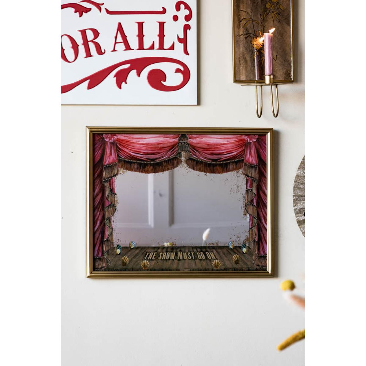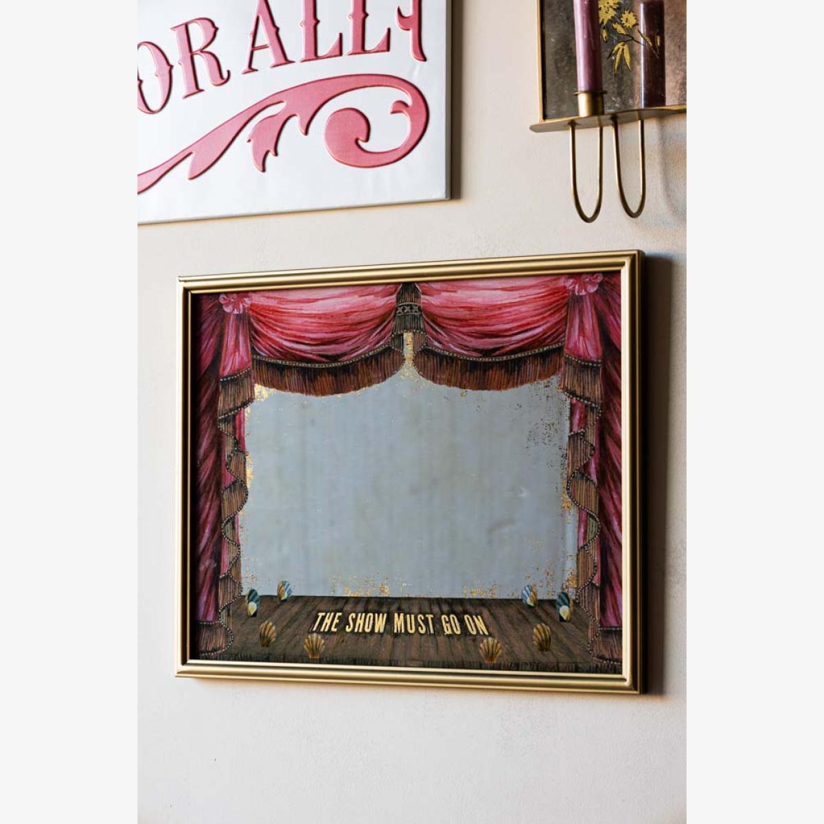 Lights, mirrors, action! Say hello to The Show Must Go On Mirror – a total scene-stealer and the kind of vintage mirror that deserves a standing ovation. This beauty is framed with hand-painted stage curtains, giving serious vintage theatre vibes, with a little wooden stage painted onto the bottom of the mirror itself. And the centre stage? The iconic phrase ‘The show must go on’ in gold-toned letters because darling… it always does. It’s playful, a little dramatic, and totally fabulous. Hang it in your hallway, living room or with your other bedroom and living room mirrors and let it serve main character energy all day, every day. Because no matter what life throws your way, the show must go on, and it must look amazing while it does.- The Show Must Go On Mirror - Measures: W50cm x H40cm - Materials: Glass & Metal - Handle with care - Wipe clean only
