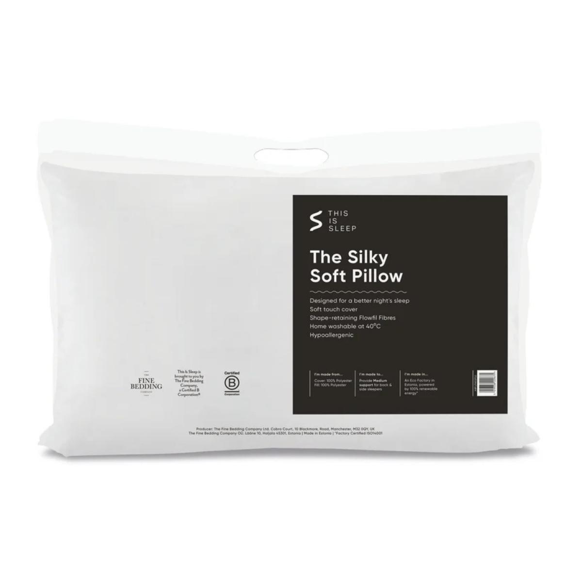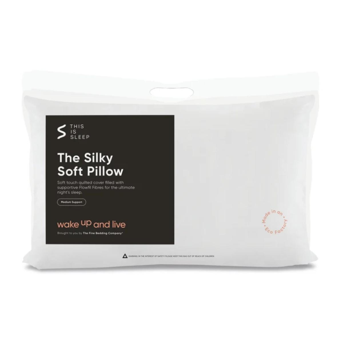 The Silky Soft Pillow has been designed to provide superior comfort with its plump fill and luxurious soft touch quilted cover. Optimally filled with Flowfil Fibres that are both shape-retaining for easy home washing, and supportive for the ultimate night's sleep. Made to provide medium support for back and side sleepers. Crafted in our Estonian Eco Factory powered by 100% renewable energy. Features: Firmness:Medium Support Outer: 100% polyester Inner: 100% Flowfil Fibre Polyester Care Instructions: Machine Washable at 40°c Tumble dry until thoroughly dry. Do not bleach or dry clean. Dimensions: Standard UK Pillow Size  74cm x 48cm All screens vary in colour reproduction and whilst every effort has been made to display the colour as accurately as possible it is for guidance only.
