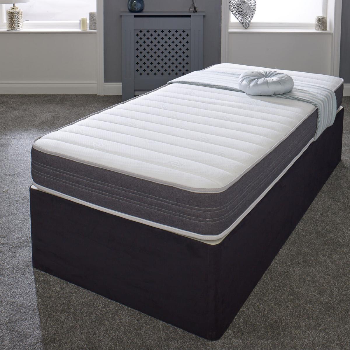 Great for bunk beds, cabin beds, day beds etc. Please do check the size of your base before ordering as these will be difficult for you to return.brbr. This is our Sirocco Grey 18cm Deep, Value Hybrid Airstream Memory Fibre Spring Mattress. It has a double insulated European engineered open coil Bonnell spring unit with deep polyester comfort fillings (75 minimum recycled content), a layer of the revolutionary Airstream Memory Fibre and a Cool Touch Classic "Linear" quilted sleeping surface with a stylish grey border. Airstream Memory Fibre is an innovative new filling created from vertically aligned fibres designed to mimic the feel of memory foam without the associated heat discomfort some sleepers experience. It is made from a high percentage of recycled plastics and, unlike foam, is 100 recyclable and V.O.C. free. Ideal as a spare room mattress, great for kids or those on a budget, it is a medium soft feel mattress with a single sleeping side, so you should rotate your mattress regularly to get the best from it. These are UK-made mattresses, produced in our West Yorkshire factory and are fully compliant with all relevant UK fire safety regulations for domestic use.brbr. We compress, vacuum pack and roll these mattresses so that they can be delivered quickly and cheaply to your door. You will need to allow a few hours after opening for your mattress to regain its shape and size.