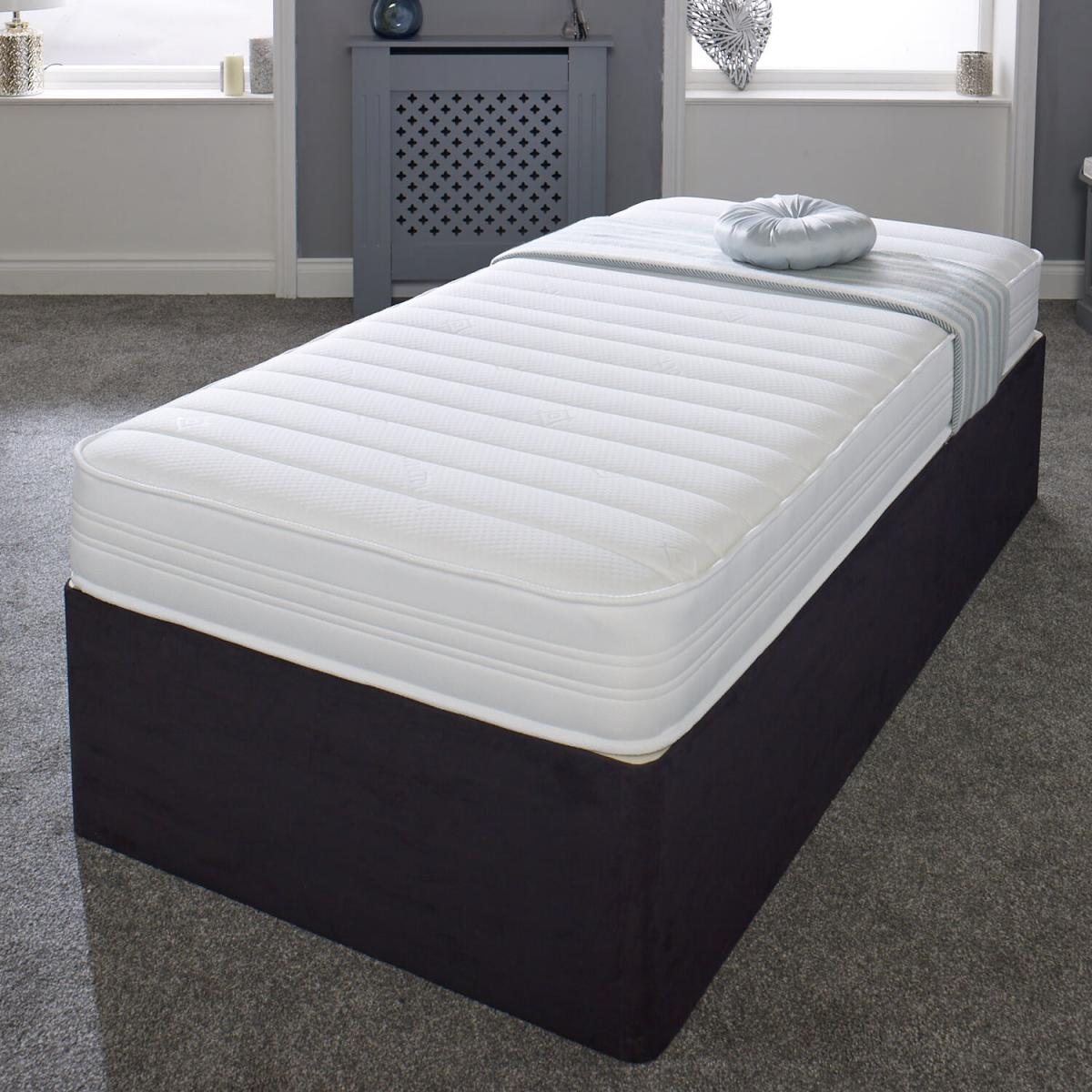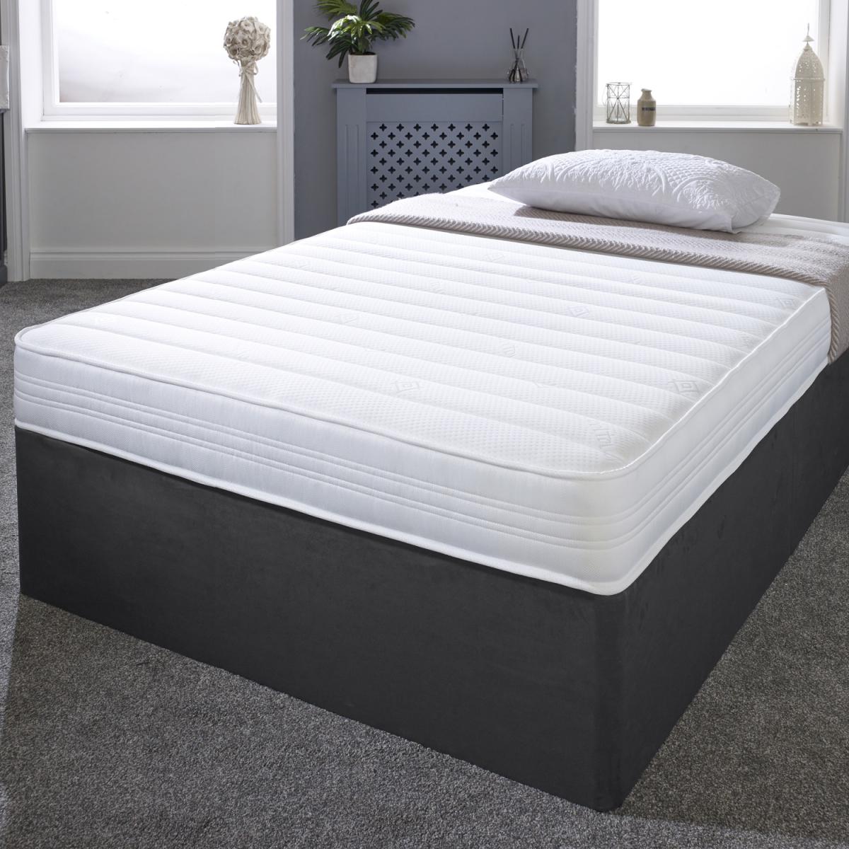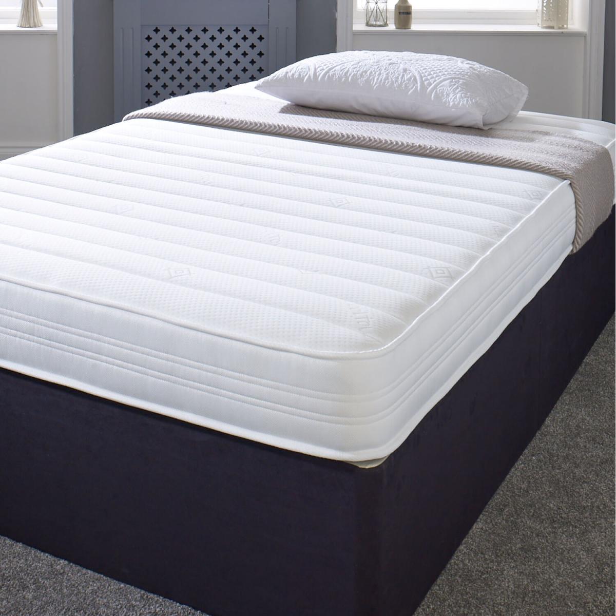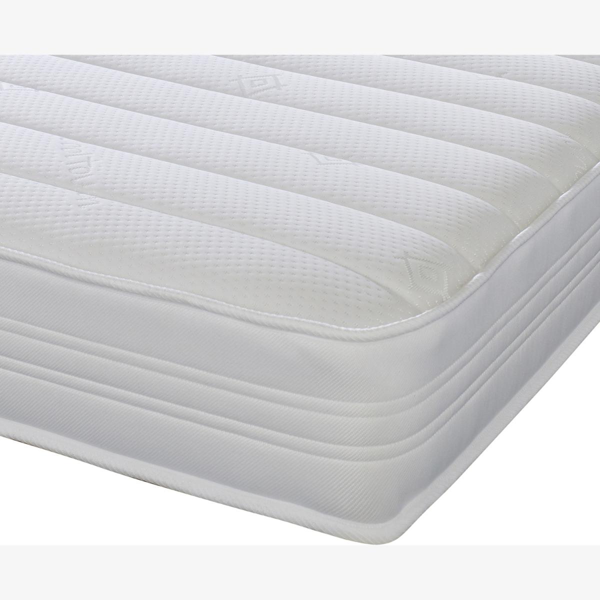 Great for bunk beds, cabin beds, day beds etc. Please do check the size of your base before ordering as these will be difficult for you to return.brbr. This is our Sirocco White 18cm Deep, Value Hybrid Airstream Memory Fibre Spring Mattress. It has a double insulated European engineered open coil Bonnell spring unit with deep polyester comfort fillings (75 minimum recycled content), a layer of the revolutionary Airstream Memory Fibre and a Cool Touch Classic "Linear" quilted sleeping surface with a stylish White border. Airstream Memory Fibre is an innovative new filling created from vertically aligned fibres designed to mimic the feel of memory foam without the associated heat discomfort some sleepers experience. It is made from a high percentage of recycled plastics and, unlike foam, is 100 recyclable and V.O.C. free. Ideal as a spare room mattress, great for kids or those on a budget, it is a medium soft feel mattress with a single sleeping side, so you should rotate your mattress regularly to get the best from it. These are UK-made mattresses, produced in our West Yorkshire factory and are fully compliant with all relevant UK fire safety regulations for domestic use.brbr. We compress, vacuum pack and roll these mattresses so that they can be delivered quickly and cheaply to your door. You will need to allow a few hours after opening for your mattress to regain its shape and size.