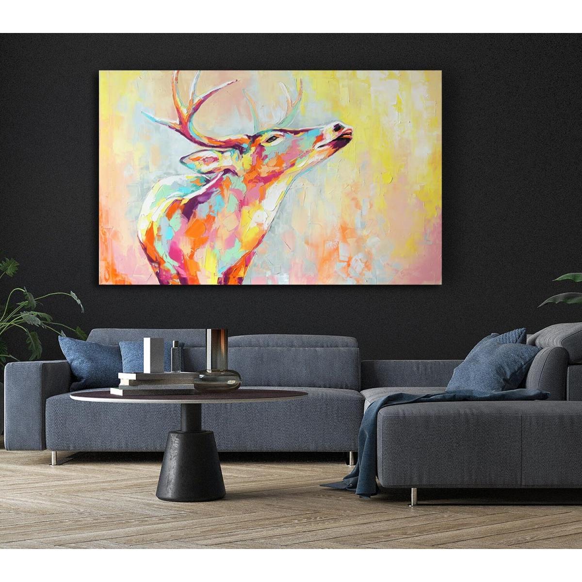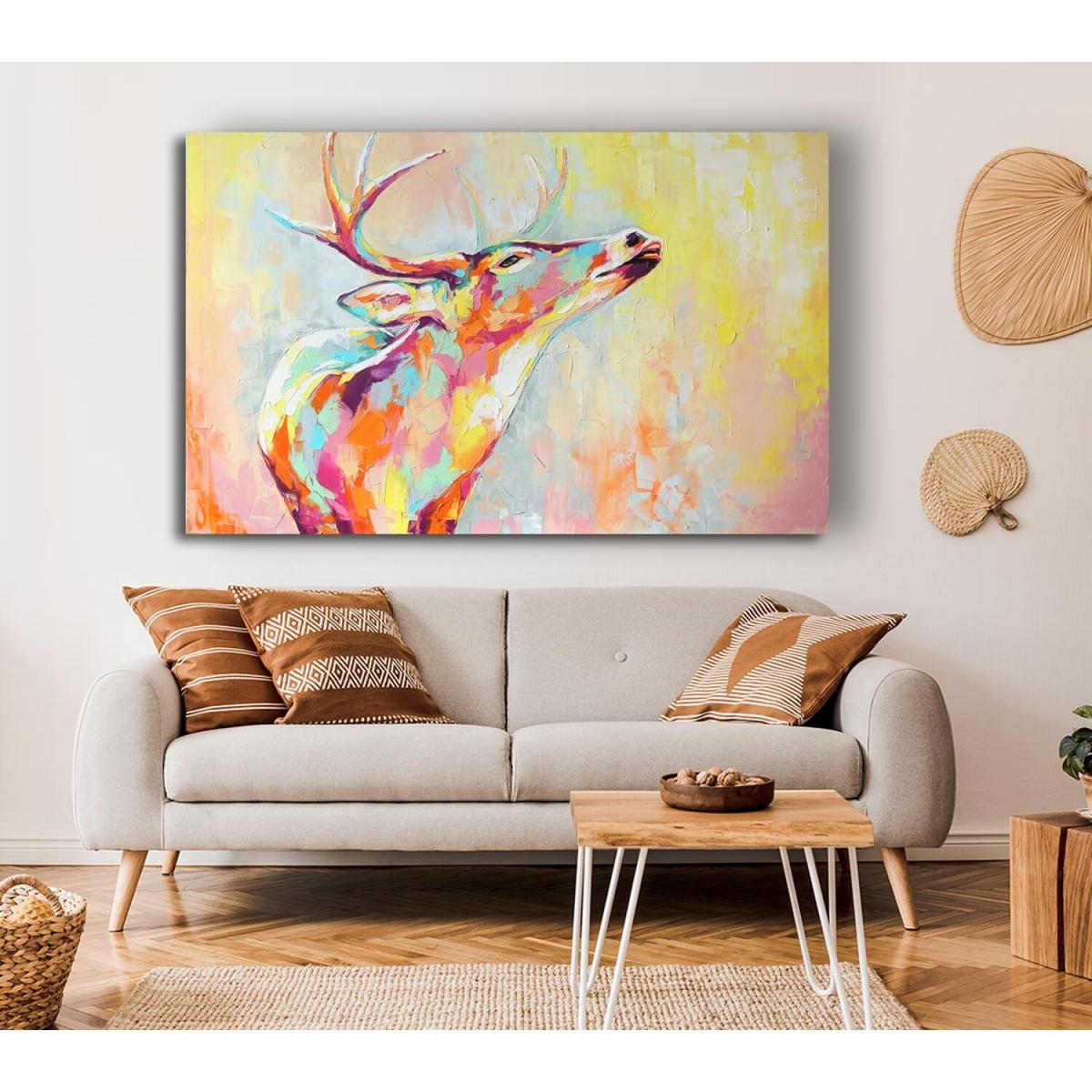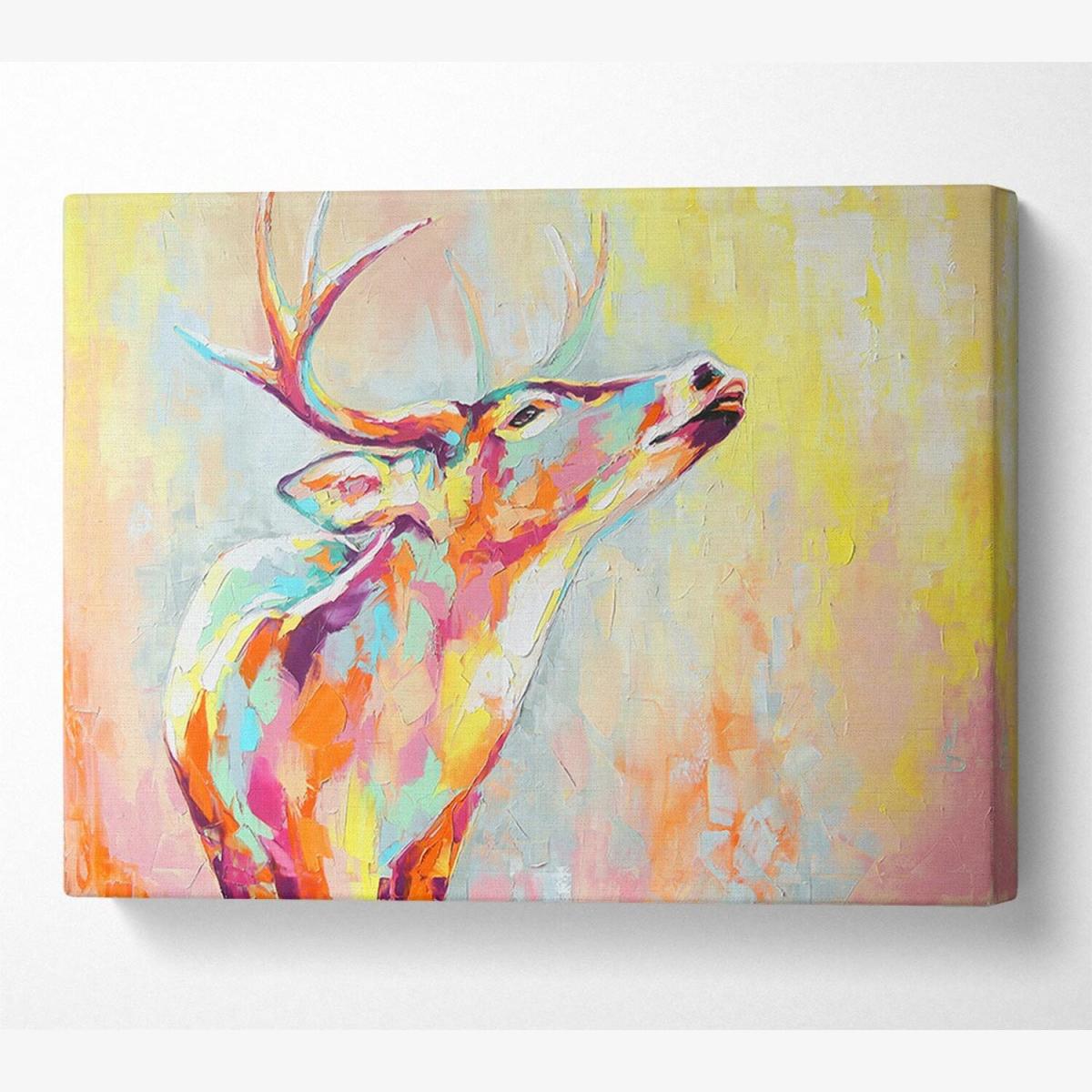 Read more about our stunning The Stag Looking Ahead wall art. Introducing our stunning canvas prints! These pieces are perfect for creating an artistic display in your home or office. Our high-quality canvases are crafted with quality materials and hand-stretched on solid wood frames to ensure the artwork will last for years to come. Plus, we use archival inks to provide a fade-resistant print that won't lose its lustre over time. Add a modern touch to your space and make a statement with one of these unique designs today!