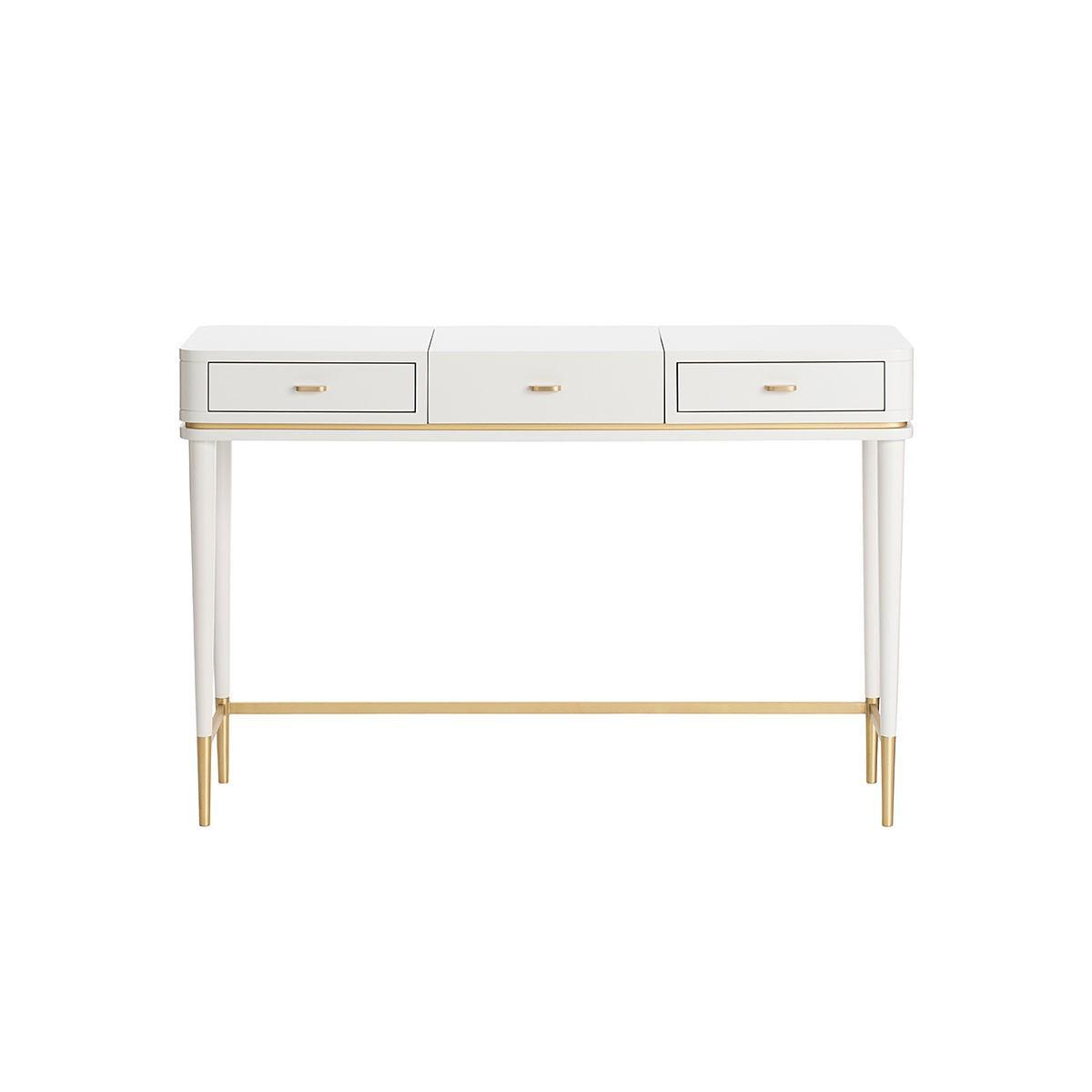 I love the sleek, clean lines of this dressing table - it offers a timeless look that works well in both classic and contemporary interiors. Its light colour palette with subtle brass accents makes it versatile, pairing effortlessly with soft pastel shades or more muted, neutral tones. This piece is particularly suited to bedrooms that maximise natural light, as it enhances a bright, airy feel. Practical styling tips include keeping the surface clutter-free with a few elegant accessories, and using organisers in the drawers to maintain a tidy and functional space. It’s ideal for smaller bedrooms or where space is at a premium, offering both style and practicality in one understated piece.