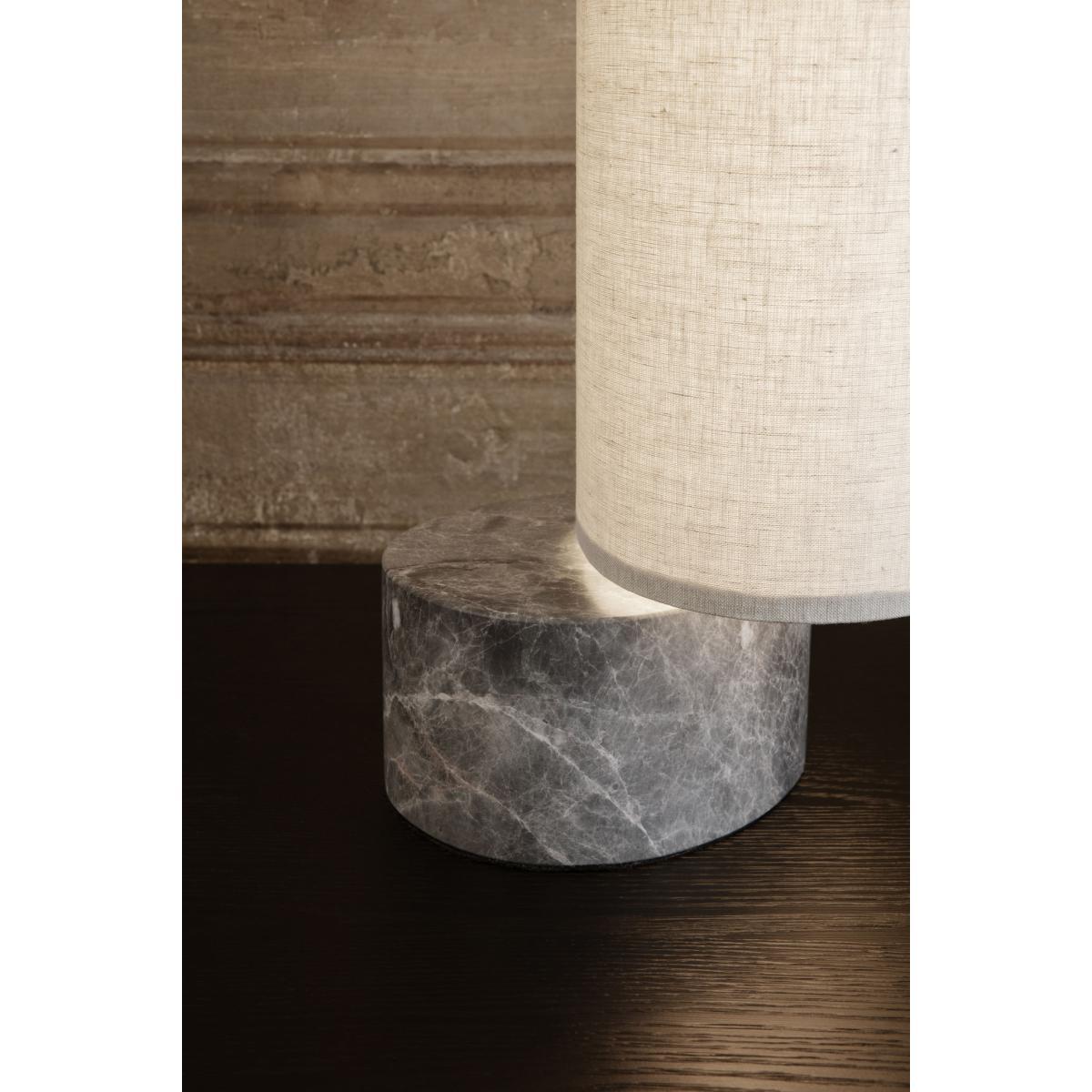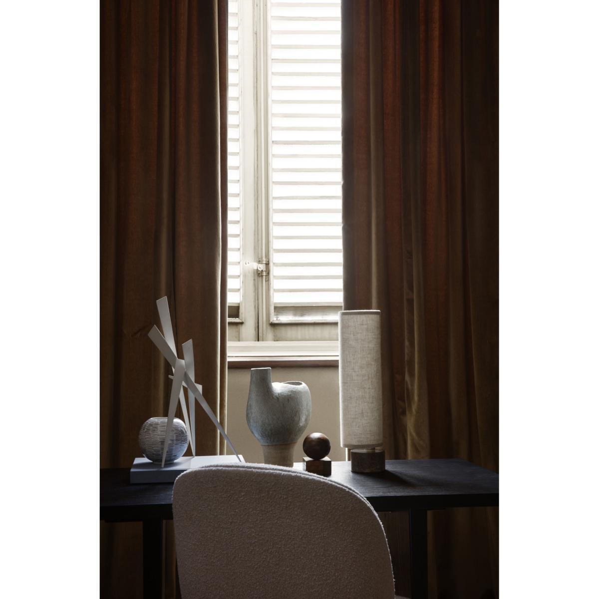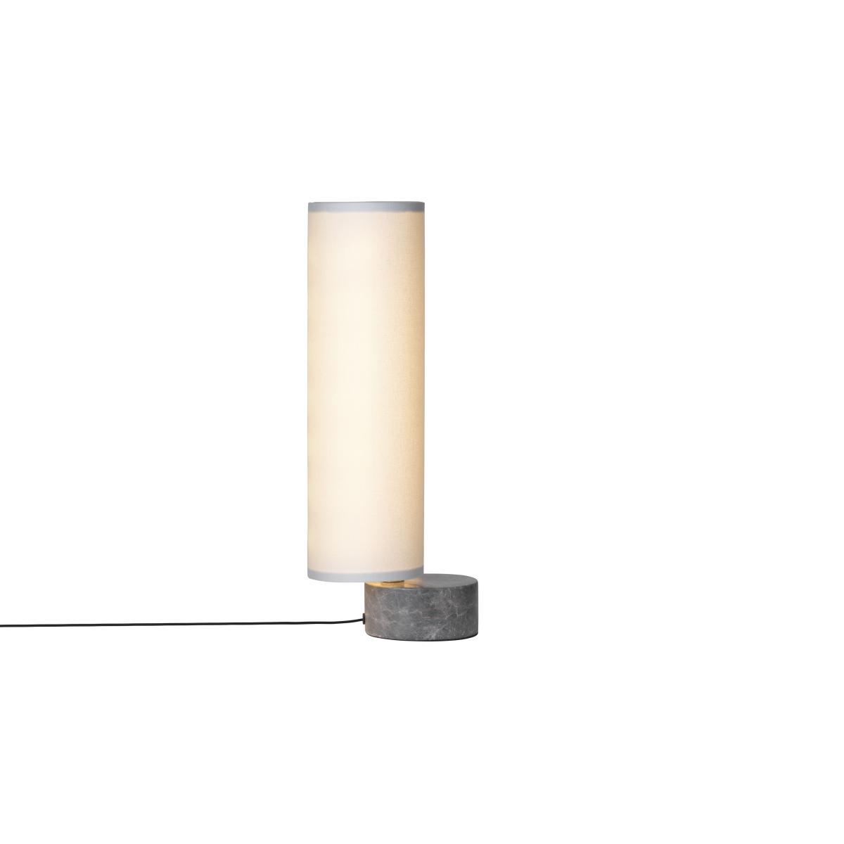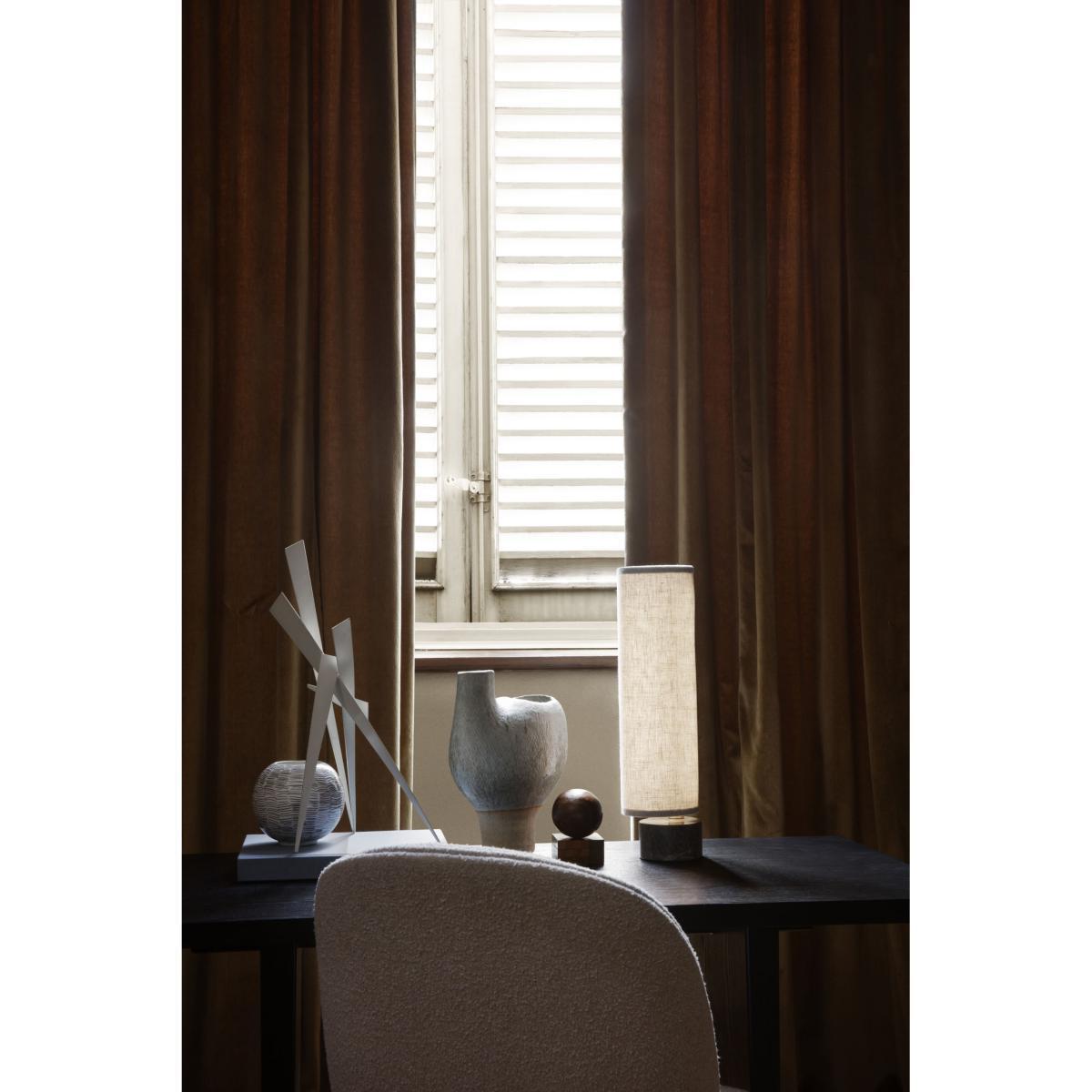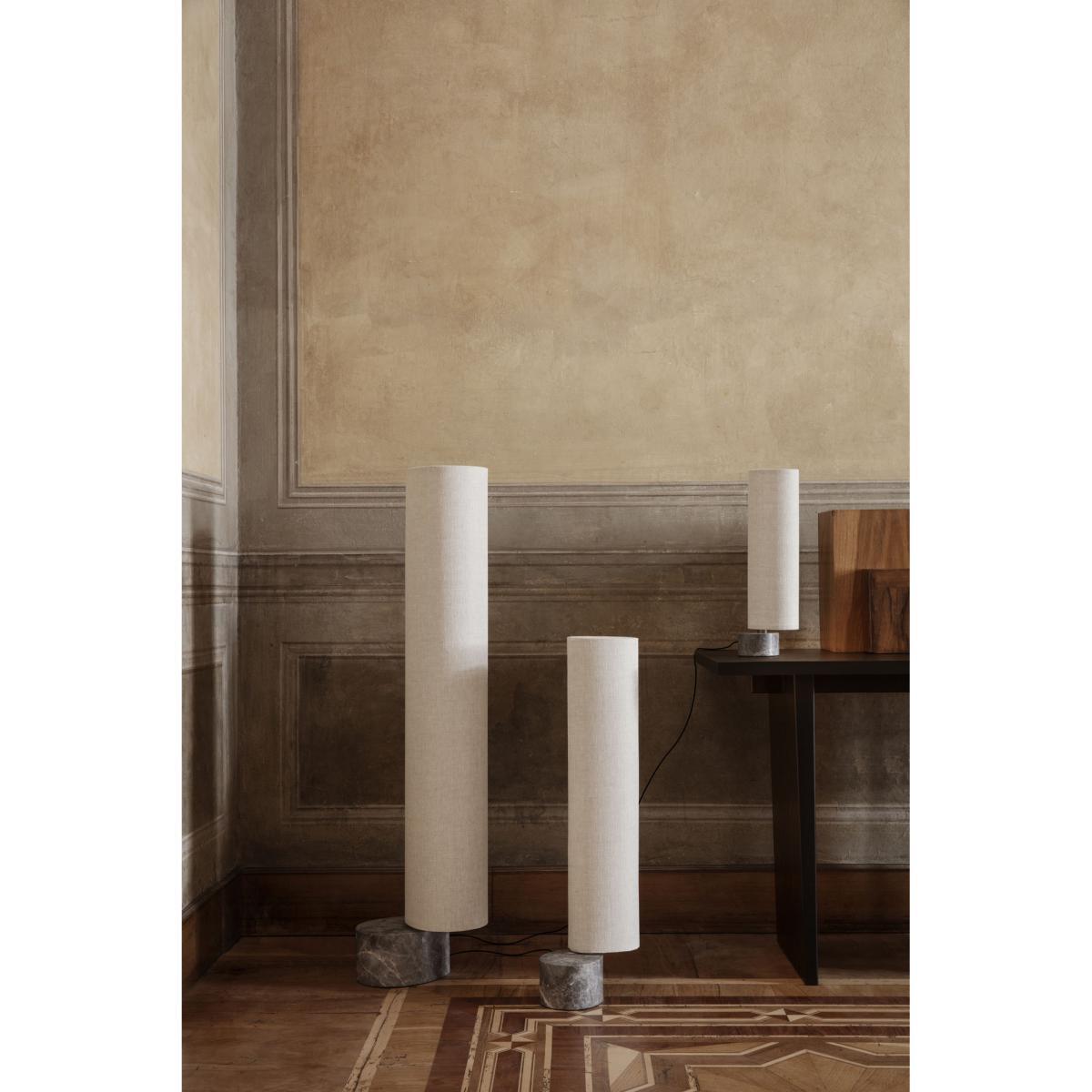 Animated sculpture… Danish studio Space Copenhagen delivers up a refined version of the traditional Japanese paper lantern. Light and dreamlike, The Unbound lamp explores the play of movement, shadow and light. It consists of two parts with contrasting aesthetics. Lightweight and ethereal, the slender white linen or beige canvas lampshade sits atop a heavy solid grey marble base that embodies anchorage and immobility. Thanks to a brass hinge, the lampshade swivels 360° on the base, like an inflated sail. The lampshade moves easily with your fingertips and can assume a position offset or perfectly aligned with the base. Lighting with a subtle balance between poetry, tradition and modernity. Discreetly shaped, halfway between Japanese paper lamps and sailor's lanterns, The Unbound lamp brings the shadow as close to the base as possible and diffuses a soft light.