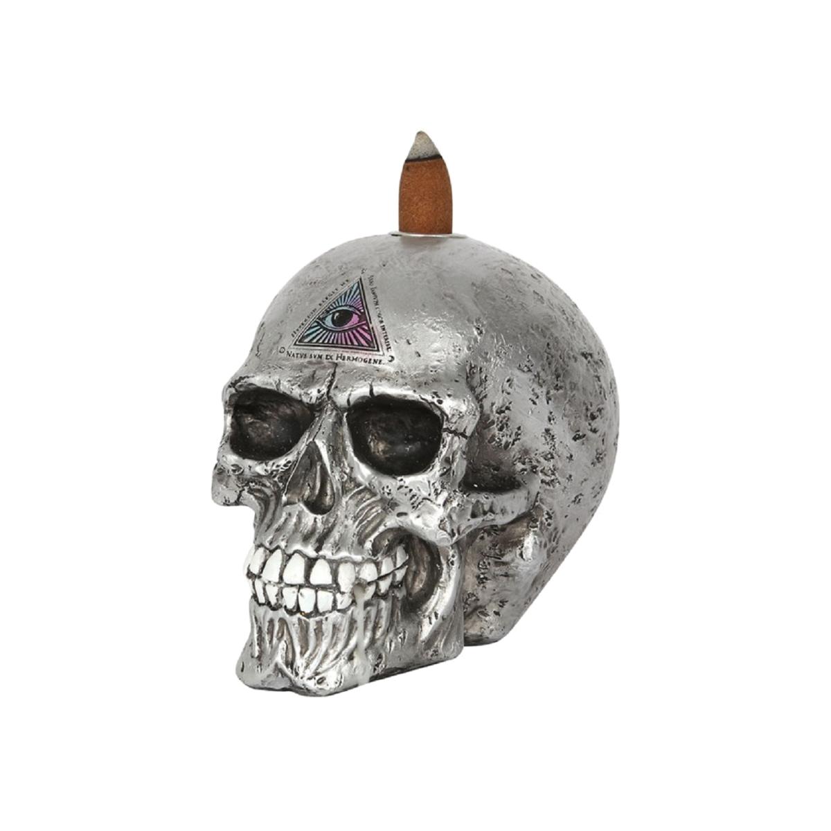 We have collaborated with the popular alternative brand, Alchemy Gothic, to bring their artwork to life in a highly detailed backflow incense burner. 'The Void' features a silver skull with an all seeing eye design. Simply place a smouldering backflow incense cone at the top and watch as mesmerising swirls of smoke trail from his mouth.