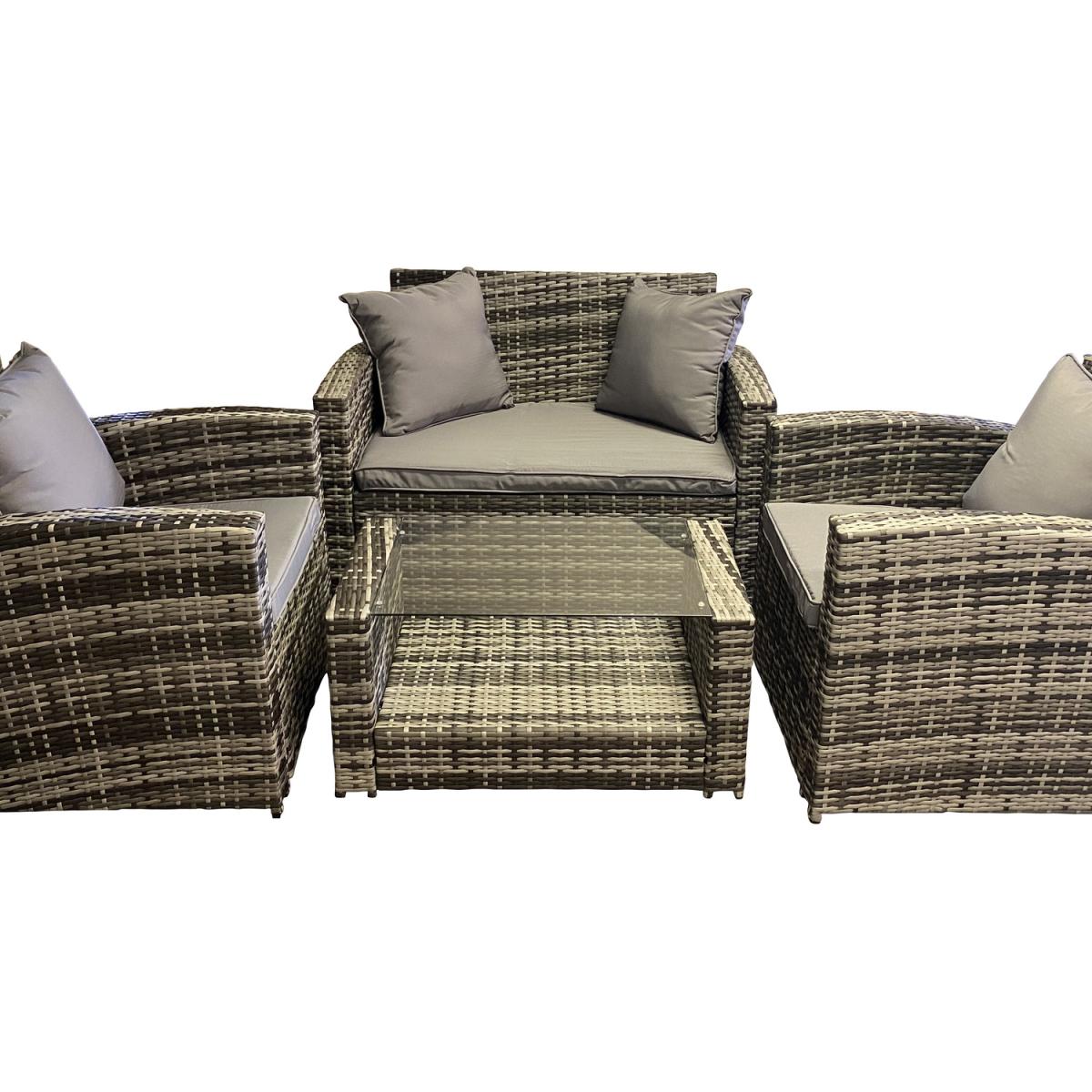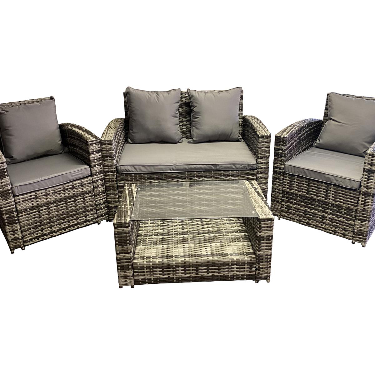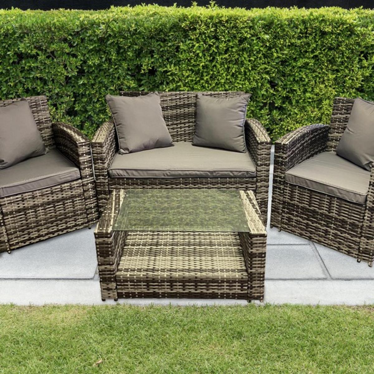 The Wilmslow Conversation set is the ideal furniture for patios, conservatories, and garden rooms alike, this four-piece sofa set adds a level of comfort to those lazy summer afternoons. Lightweight, yet solid and robust enough to withstand the years of use and enjoyment from your new garden furniture set. The Wilmslow is fully UV resistant to UV light and requires very little maintenance. From the rattan coated frame to the thick cushions, the whole set is completely weatherproof, including the showerproof covers. Complete your garden with this gorgeous rattan Sofa Lounge set. This sofa set will fit perfectly into any modern or contemporary garden and is easy to maintain. A classic choice for outdoor living, this beautiful set will look the part in any contemporary or traditional garden. Made from all-weather garden fabric to withstand British weather! Tempered glass tabletop ensures durability and makes it easy to wipe clean. Weather and water-resistant cushions (Please read care label - bring cushions indoors in harsh - weather conditions).