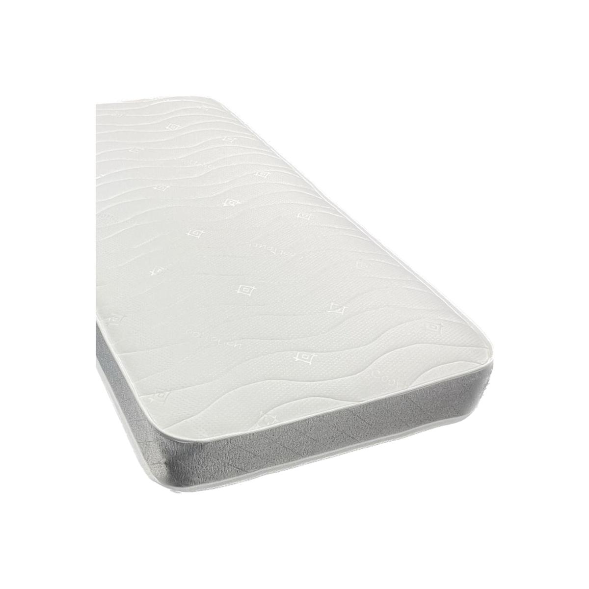 The Wilson Ortho Standard grey box bordered spring and memory foam hybrid mattress is ideal for children, teens and guest bedrooms, and can be used by adults as an everyday mattress if required. It has a 13.5 gauge open coil spring unit at its core providing its medium soft feel at a great value price. This is covered with spring insulator pads, twice the layers of polyester comfort fillings (compared to the basic version) and a layer of high density visco-elastic memory foam. The sleeping surface consists of the Wilson's Long Wave design, quilted on a Cool Touch Jersey knit fabric, forming an additional comfort layer. The mattress is approximately 20cm or 8 inches deep. We compress, vacuum seal, roll-pack and box the item for delivery, therefore they do not have side supports. Please measure your bed before placing your order to ensure you receive the correct size. For best results, unwrap your new mattress within seven days of receipt, and allow the mattress to air in a well-ventilated area so that it can decompress for at least 72 hours prior to use. Rotate regularly to get maximum comfort and lifespan from your new mattress. Single sided.
