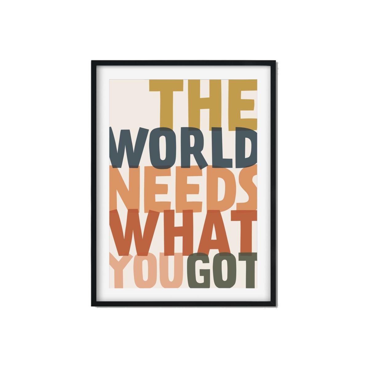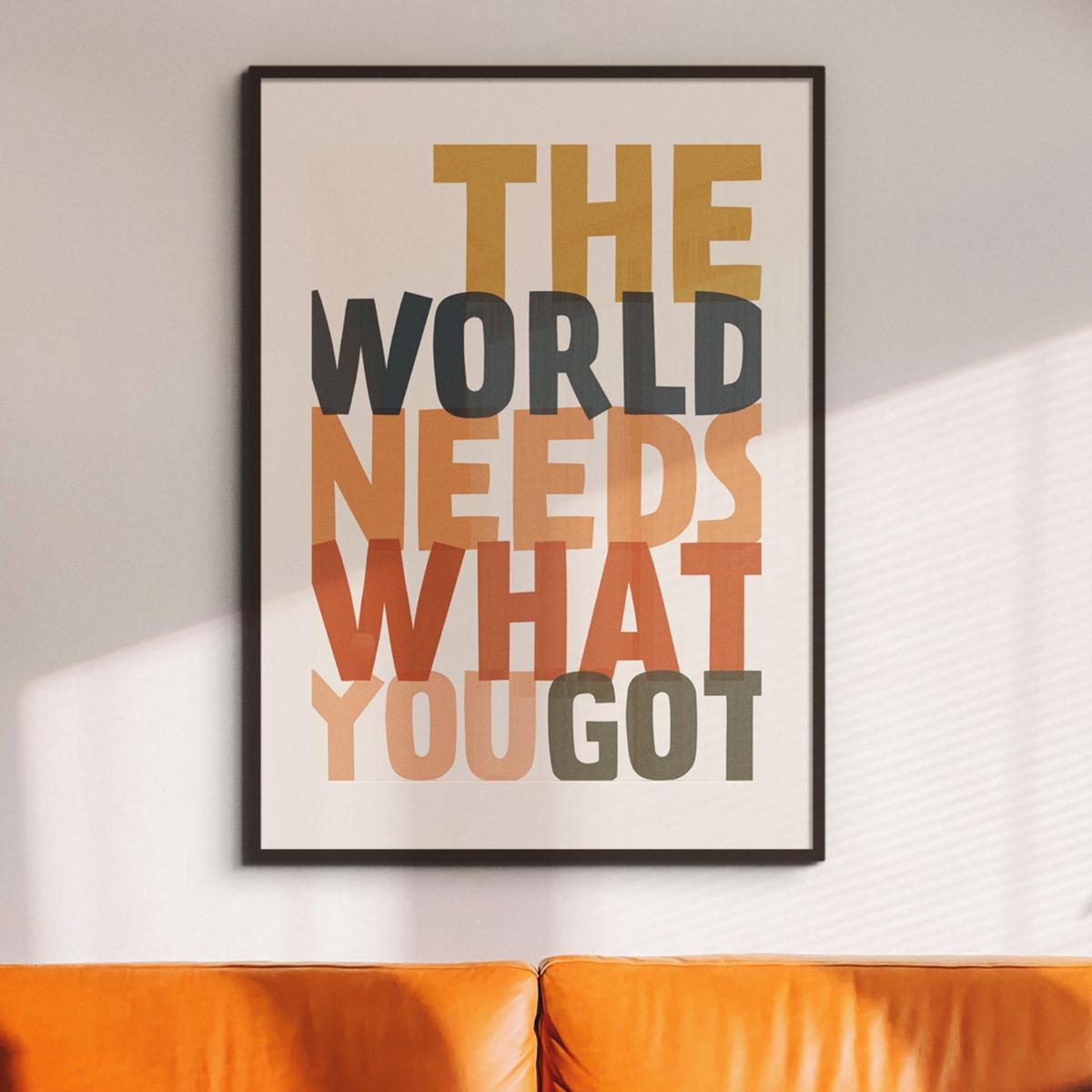 This positive message is a wonderful reminder to always stay true to yourself. Your brilliant thoughts and ideas are uniquely yours. Own them, and know that the world needs what you got! Featuring bold, inspiring messaging and bold colours to match, this statement wall art piece is designed to provide your gallery wall with positivity, joy, and bundles of self-confidence. A3 size. Sold unframed. Printed on thick, museum-quality paper (250gsm) with high-quality ink to prevent fading.
