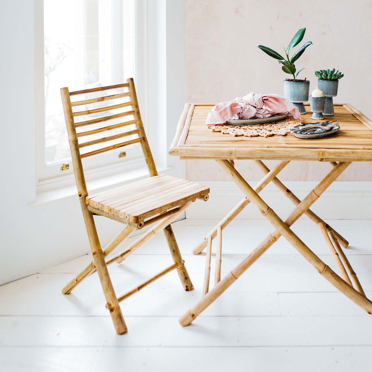 A foldable eastern-inspired chair crafted from natural bamboo for a truly organic feel to your seating arrangements.